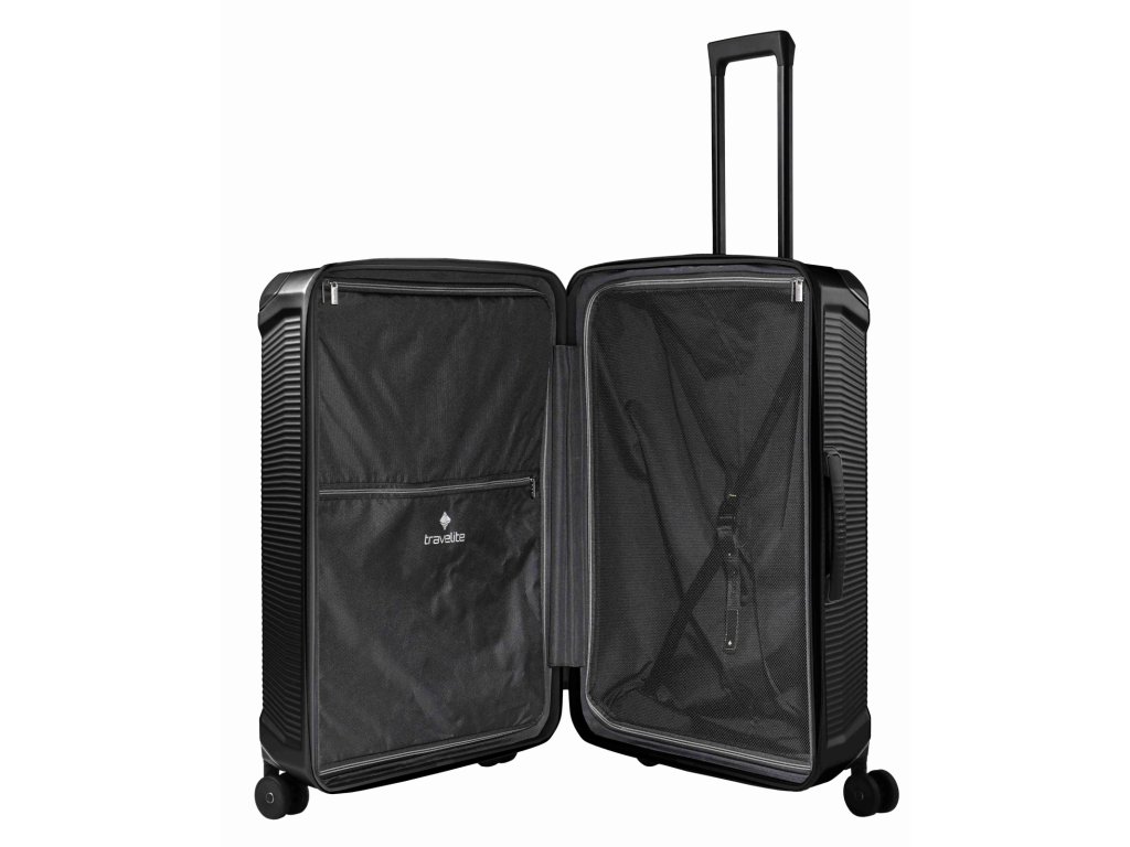 Cestovní kufr velikosti L značky Travelite v oblíbené černé barvě série Millennium. Velký kufr Travelite Millennium L je určený pro delší cesty, rodinné dovolené nebo situace, kdy se prostě nechceš omezovat. Nabízí opravdu velký vnitřní prostor, pevnou konstrukci a klid v hlavě, že se do něj všechno vejde. Jeho velkorysý objem nabízí dostatek místa, zatímco robustní a lehký polykarbonát poskytuje bezpečnou ochranu. Hladce se pohybující kolečka s kuličkovými ložisky a robustní ochranné rohy zajišťují maximální pohodlí i na dlouhých cestách. Kufr, který zaujme kombinací odolnosti, funkčnosti a elegantního vzhledu a z každé cesty udělá nezapomenutelný zážitek. Kufr, který vydrží roky – s trvalou kvalitou a nadčasovým stylem.