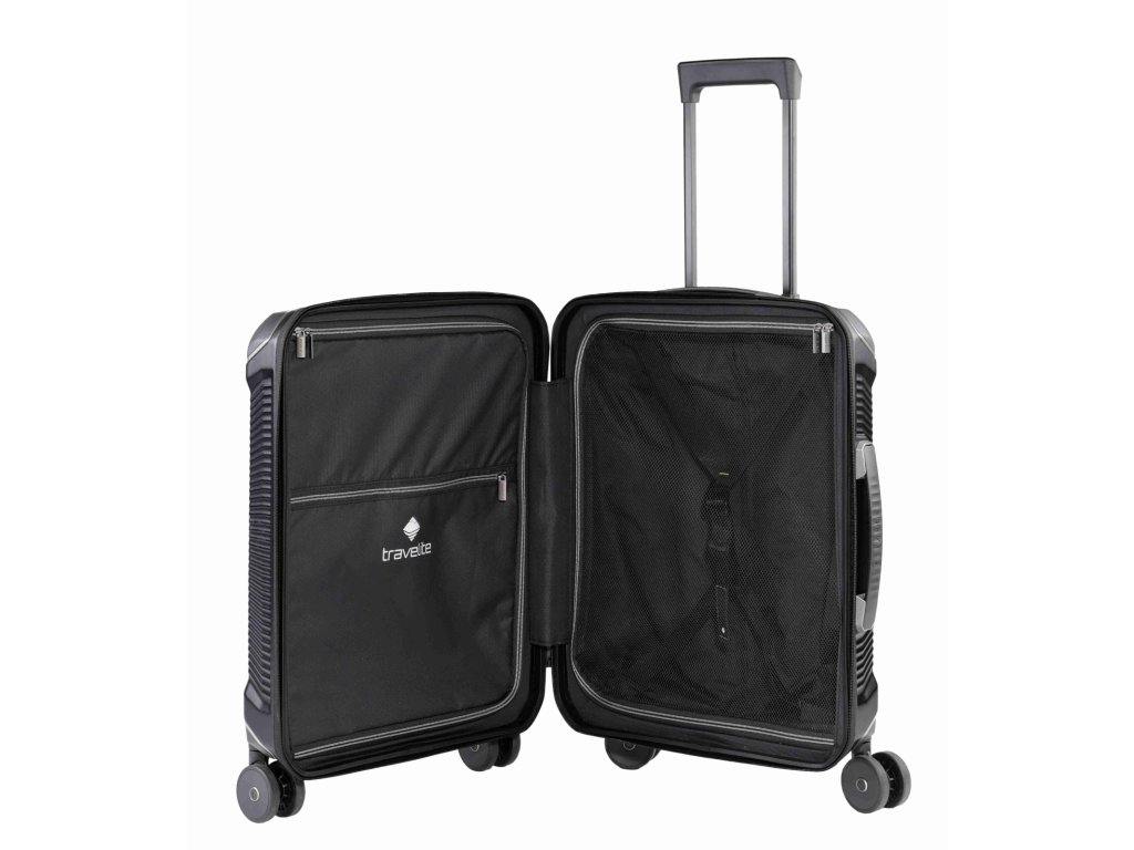 Kabinový cestovní kufr značky Travelite v oblíbené černé barvě série Millennium. Kabinový kufr Travelite Millennium S je přesně ten typ zavazadla, který chceš mít po ruce, když nechceš řešit kompromisy. Kompaktní, lehký a sebevědomý na cesty. Kufr Millennium Trolley S je ideální příruční zavazadlo pro moderní cestovatele, kteří si cení organizovanosti a stylu. Navzdory kompaktním rozměrům zaujme prostorným interiérem a chytrým uspořádáním. Uvnitř najdeš praktické členění s fixačními popruhy a dělicí přepážkou, takže oblečení zůstane tam, kam patří. Superlehký polykarbonát zajišťuje pohodlnou manipulaci, zatímco zesílené ochranné rohy a integrovaný zámek TSA zaručují bezpečnost. Čtyři hladce se pohybující dvojitá kolečka s kuličkovými ložisky zajišťují plynulé klouzání po jakémkoli povrchu. Kufr, který vydrží roky – s trvalou kvalitou a nadčasovým stylem.