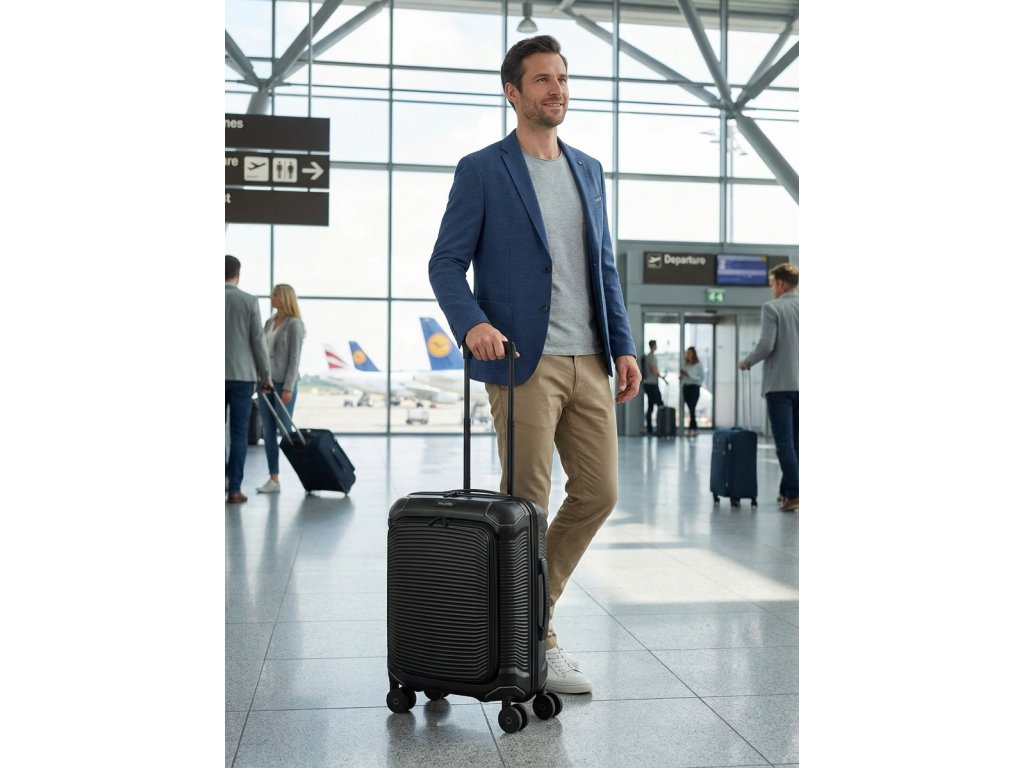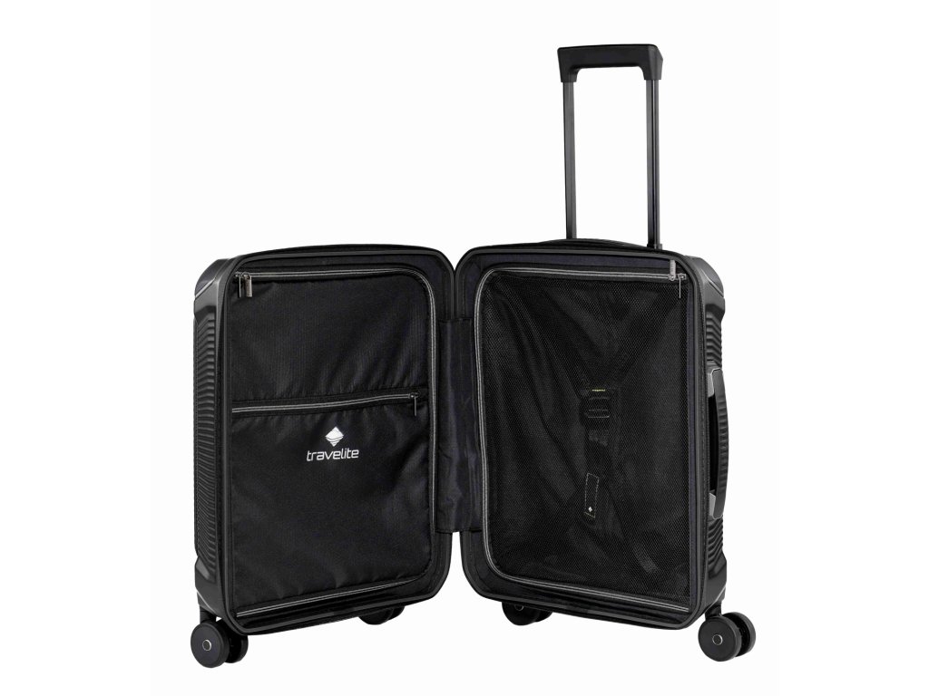 Kabinový cestovní kufr značky Travelite v oblíbené černé barvě série Millennium. Kabinový kufr Travelite Millennium S pocket je ideální volba pro ty, kteří chtějí mít důležité věci hned po ruce. Oproti klasické verzi nabízí praktickou přední kapsu, kam se vejde notebook, dokumenty nebo věci, které potřebuješ vytáhnout bez otevírání celého kufru. Kompaktní, lehký a sebevědomý na cesty. Kufr Millennium Trolley S packet je ideální příruční zavazadlo pro moderní cestovatele, kteří si cení organizovanosti a stylu. Navzdory kompaktním rozměrům zaujme prostorným interiérem a chytrým uspořádáním. Uvnitř najdeš praktické členění s fixačními popruhy a dělicí přepážkou, takže oblečení zůstane tam, kam patří. Superlehký polykarbonát zajišťuje pohodlnou manipulaci, zatímco zesílené ochranné rohy a integrovaný zámek TSA zaručují bezpečnost. Čtyři hladce se pohybující dvojitá kolečka s kuličkovými ložisky zajišťují plynulé klouzání po jakémkoli povrchu.