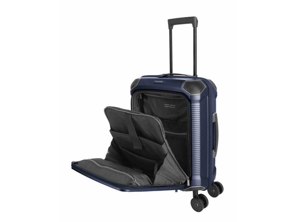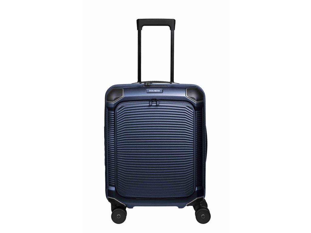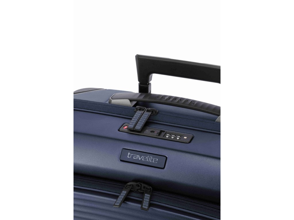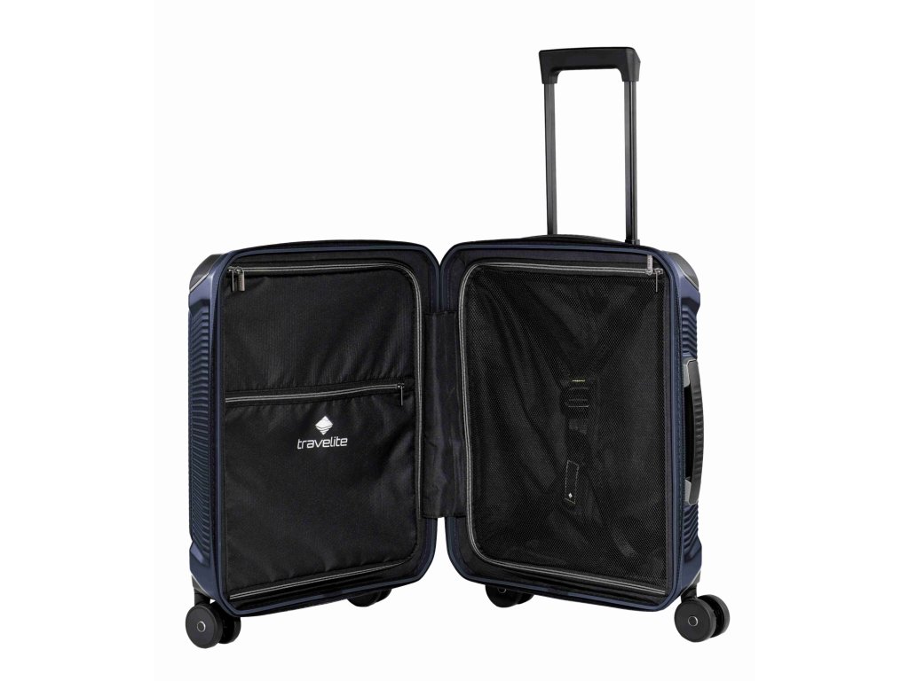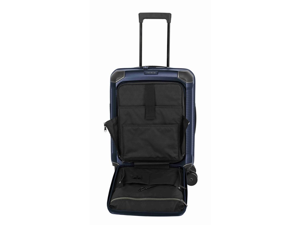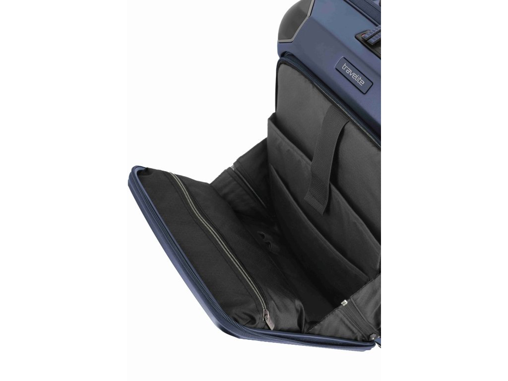 Kabinový cestovní kufr značky Travelite v tmavě modré barvě série Millennium. Kabinový kufr Travelite Millennium S pocket je ideální volba pro ty, kteří chtějí mít důležité věci hned po ruce. Oproti klasické verzi nabízí praktickou přední kapsu, kam se vejde notebook, dokumenty nebo věci, které potřebuješ vytáhnout bez otevírání celého kufru. Kompaktní, lehký a sebevědomý na cesty. Kufr Millennium Trolley S packet je ideální příruční zavazadlo pro moderní cestovatele, kteří si cení organizovanosti a stylu. Navzdory kompaktním rozměrům zaujme prostorným interiérem a chytrým uspořádáním. Uvnitř najdeš praktické členění s fixačními popruhy a dělicí přepážkou, takže oblečení zůstane tam, kam patří. Superlehký polykarbonát zajišťuje pohodlnou manipulaci, zatímco zesílené ochranné rohy a integrovaný zámek TSA zaručují bezpečnost. Čtyři hladce se pohybující dvojitá kolečka s kuličkovými ložisky zajišťují plynulé klouzání po jakémkoli povrchu.