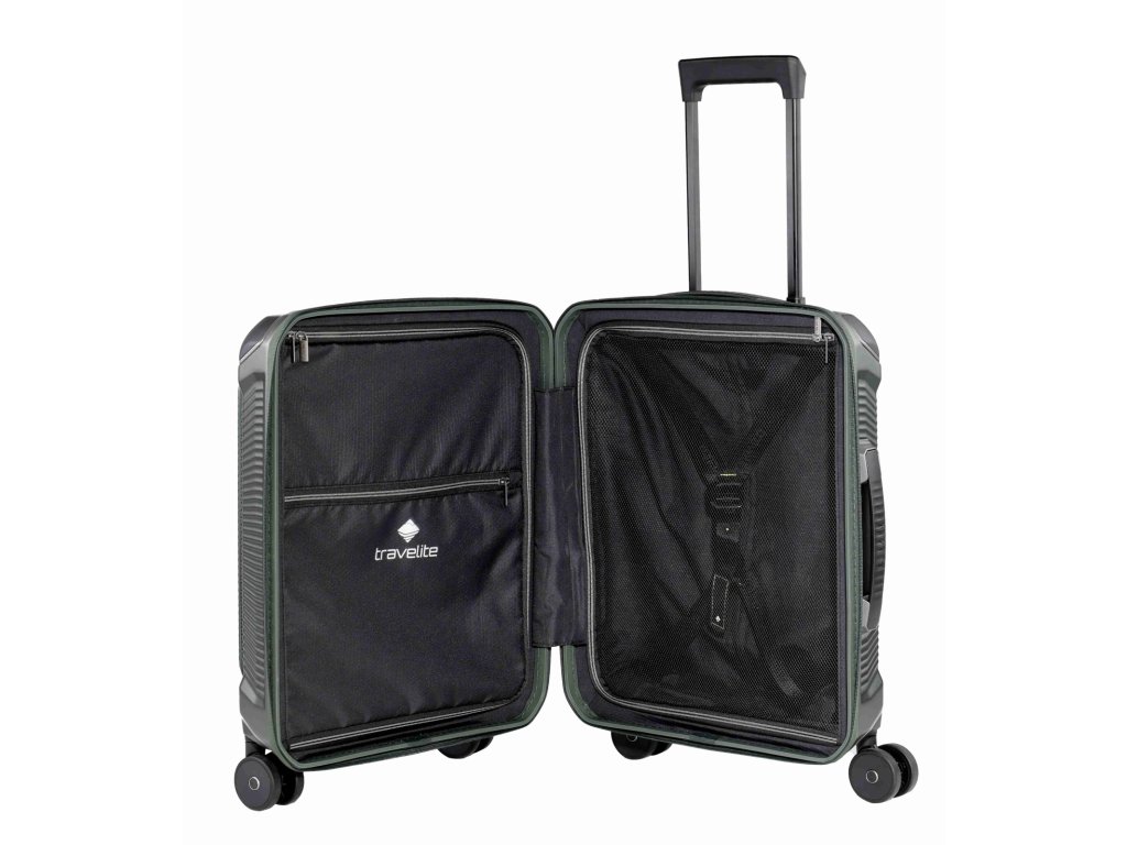 Kabinový cestovní kufr značky Travelite v zajímavé zelené barvě série Millennium. Kabinový kufr Travelite Millennium S pocket je ideální volba pro ty, kteří chtějí mít důležité věci hned po ruce. Oproti klasické verzi nabízí praktickou přední kapsu, kam se vejde notebook, dokumenty nebo věci, které potřebuješ vytáhnout bez otevírání celého kufru. Kompaktní, lehký a sebevědomý na cesty. Kufr Millennium Trolley S packet je ideální příruční zavazadlo pro moderní cestovatele, kteří si cení organizovanosti a stylu. Navzdory kompaktním rozměrům zaujme prostorným interiérem a chytrým uspořádáním. Uvnitř najdeš praktické členění s fixačními popruhy a dělicí přepážkou, takže oblečení zůstane tam, kam patří. Superlehký polykarbonát zajišťuje pohodlnou manipulaci, zatímco zesílené ochranné rohy a integrovaný zámek TSA zaručují bezpečnost. Čtyři hladce se pohybující dvojitá kolečka s kuličkovými ložisky zajišťují plynulé klouzání po jakémkoli povrchu.