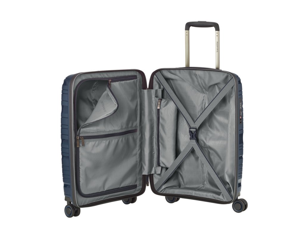 Tvrdý a odolný cestovní kufr německé značky Travelite v tmavě modré barvě. Tento stylový kufr je kvalitně zpracován a je velmi hezky a moderně tvarovaný. Tato velikost S je akceptována většinou leteckých společností jako palubní zavazadlo.