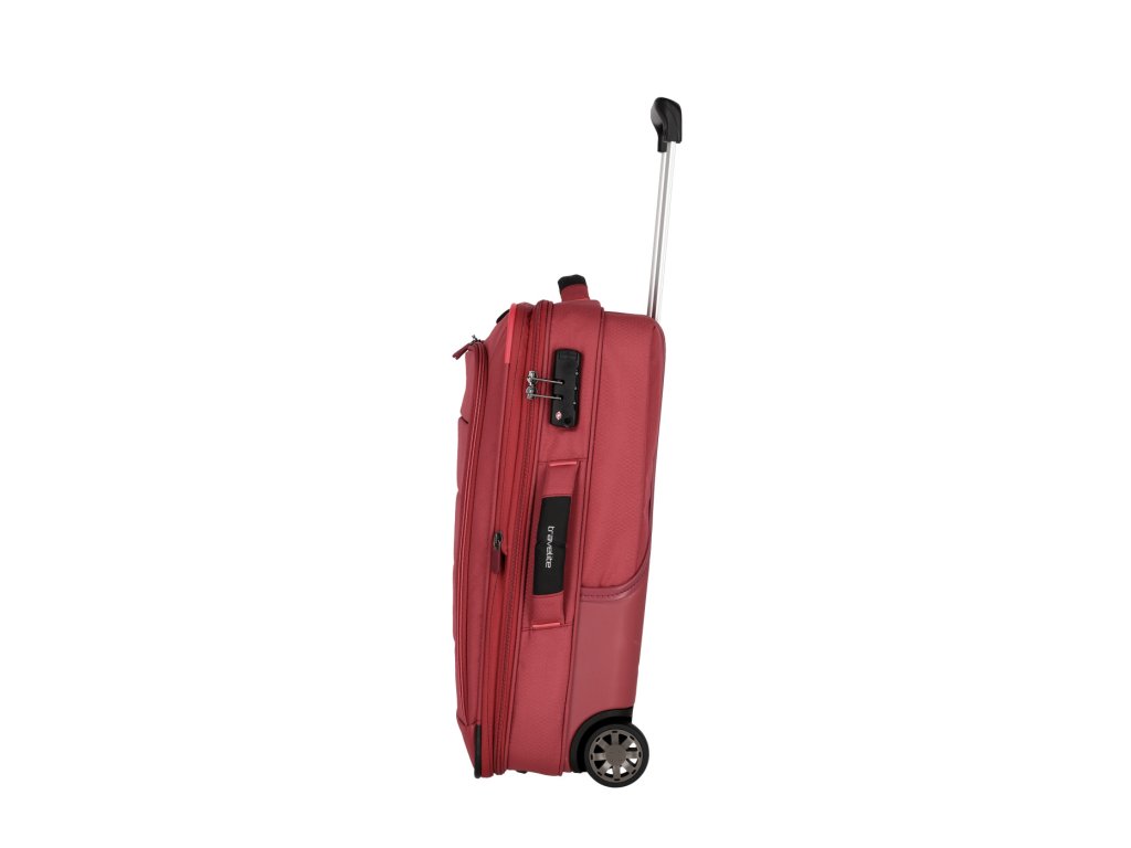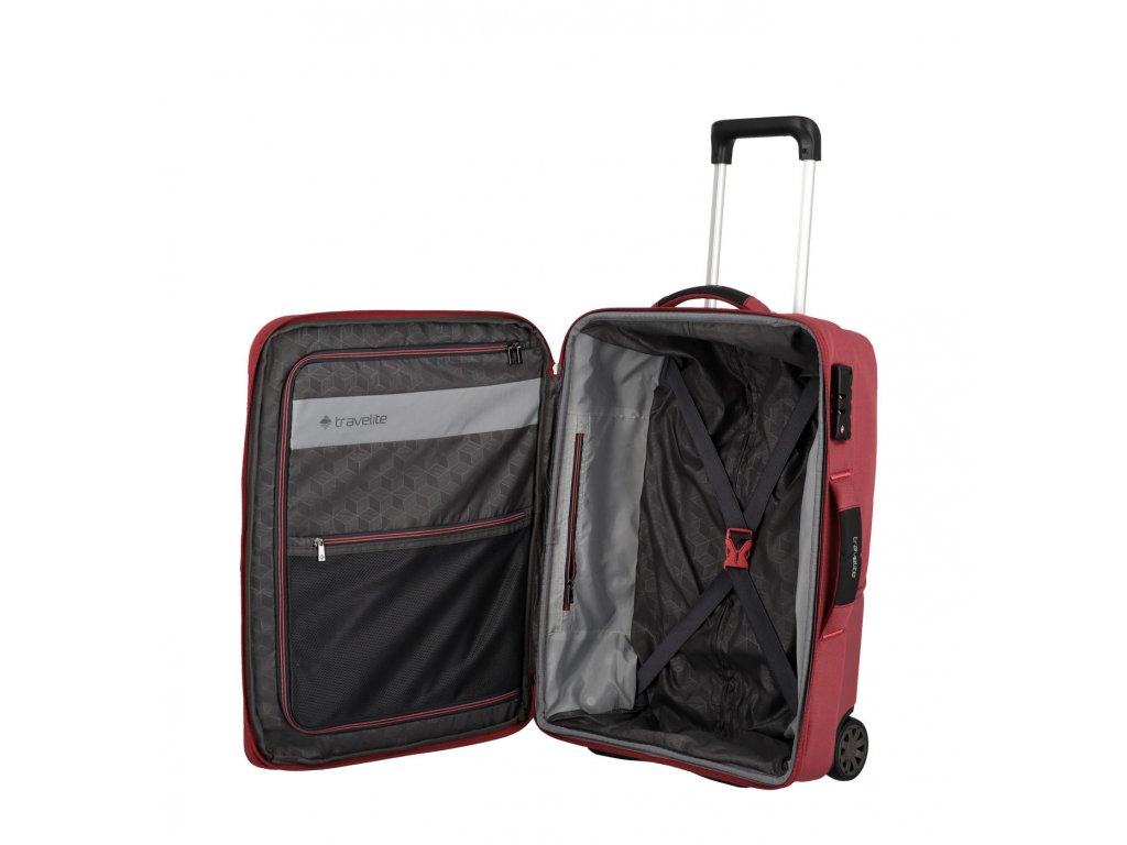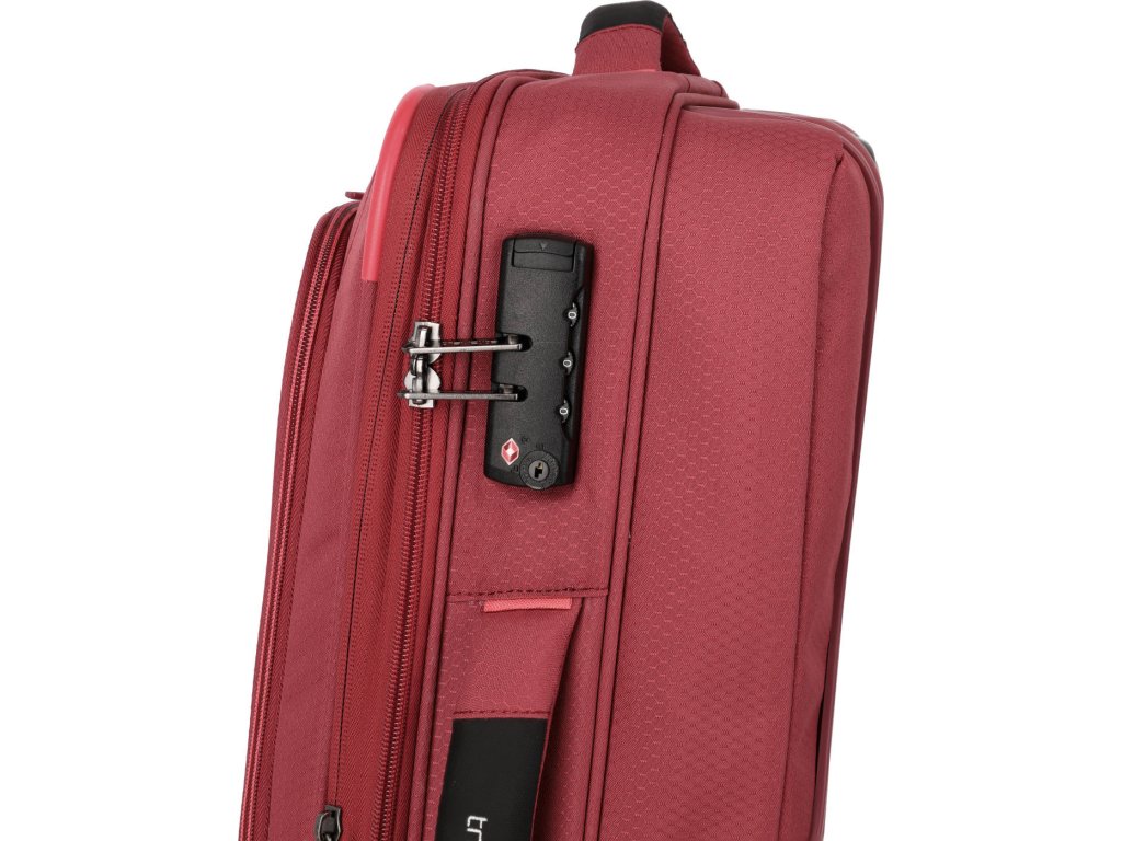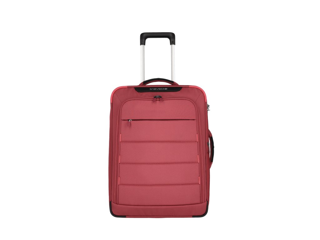 Moderní kombinovaný hybridní kufr německé značky Travelite 55 cm série Skaii v červené barvě. Přední část kufru je textilní, zadní je plastová. Série Skaii přesně pasuje k vašemu bezstarostnému přístupu k životu. Všechny produkty z produktové řady Skaii překvapují svou neuvěřitelně nízkou hmotností, zároveň jsou robustní a promyšlené v každém detailu. Se Skaii můžete také udělat něco pro životní prostředí, protože všechny produkty jsou vyrobeny z recyklovaného materiálu.