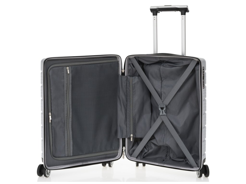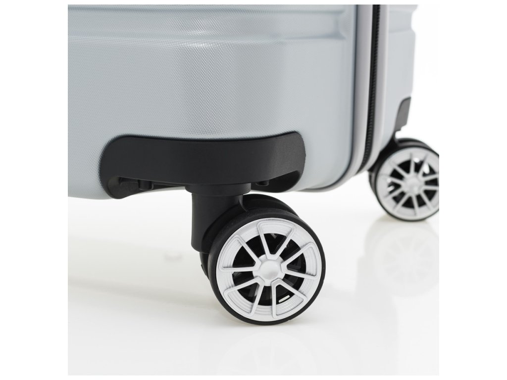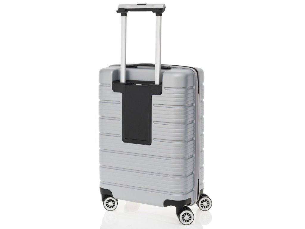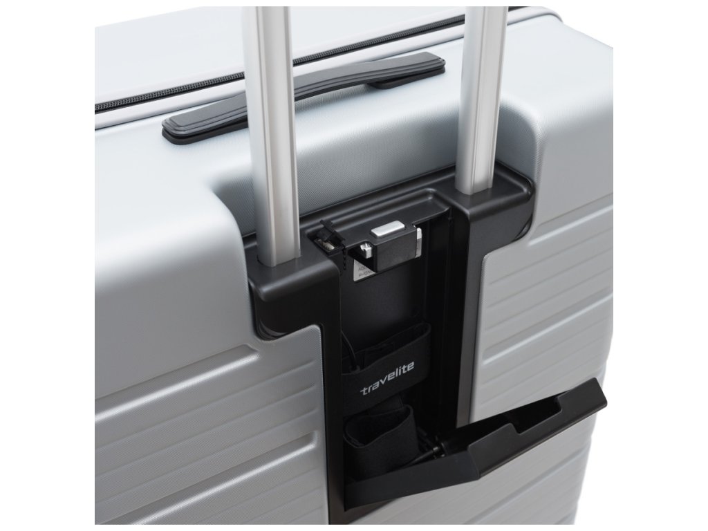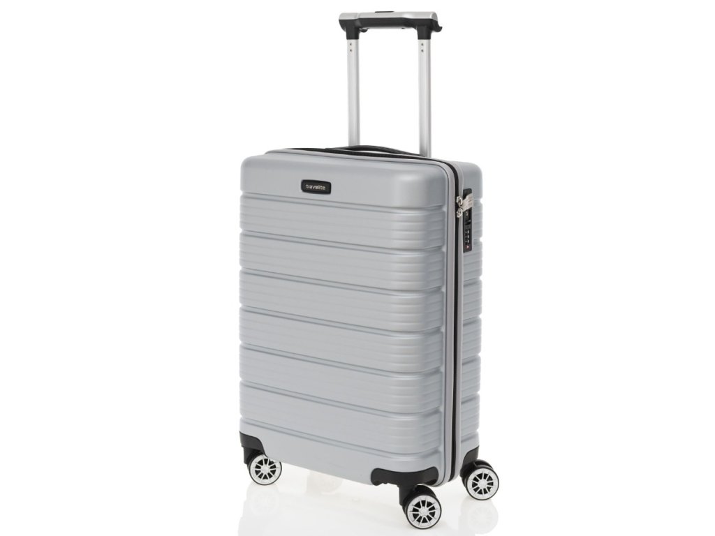Menší cestovní velmi odolný špičkový kufr značky Travelite v luxusní stříbrné barvě. Tento perfektně zpracovaný kufr je navíc vybaven vzadu i USB portem a dvěma háčky na rukojeti pro zavěšení saka nebo bundy. Hledáte-li kvalitní spolehlivé zavazadlo na vaše cesty, kufry od Travelite budou jistě tím pravým pro Vás.