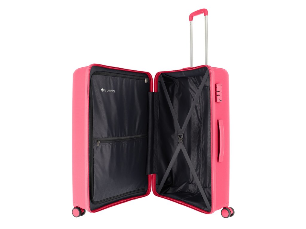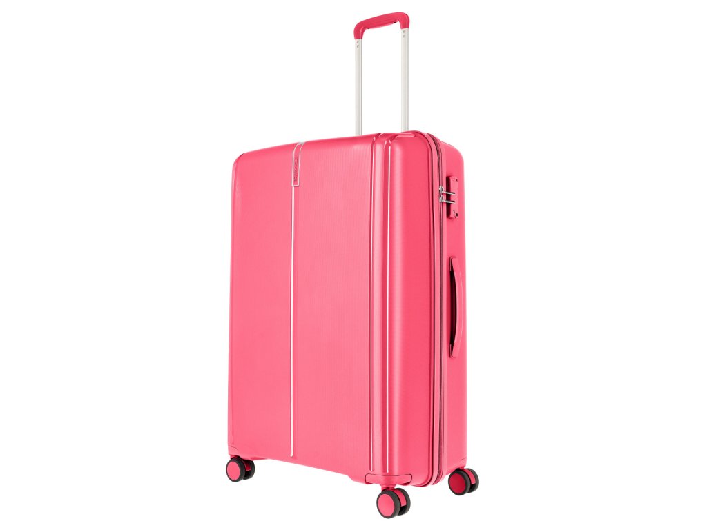 Skořepinový cestovní kufr velikosti L značky Travelite série VAKA v růžové barvě. Vydejte se na cesty stylově a spolehněte se na kvalitní kufry firmy Travelite, které jsou vyrobeny z velmi odolného materiálu polypropylen.