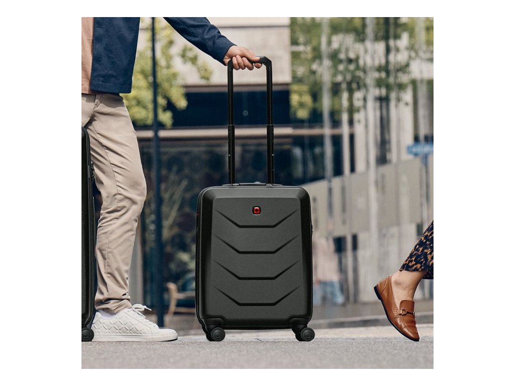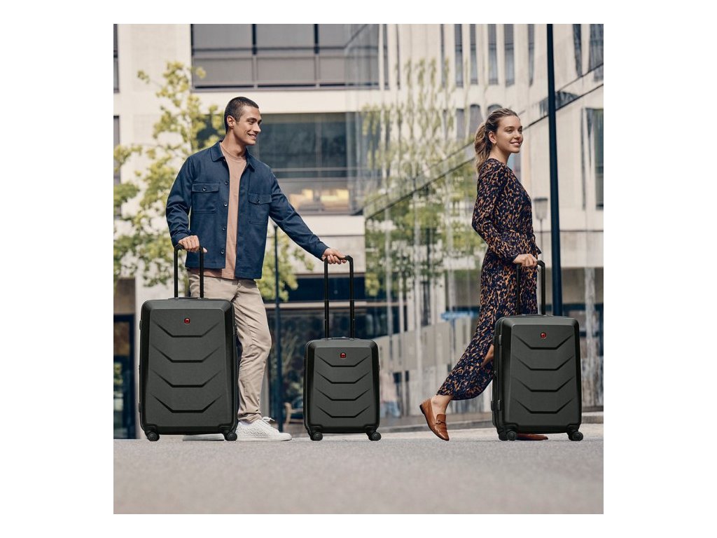 Plastový cestovní kufr švýcarské značky Wenger série Prymo 55 cm v antracitové barvě.