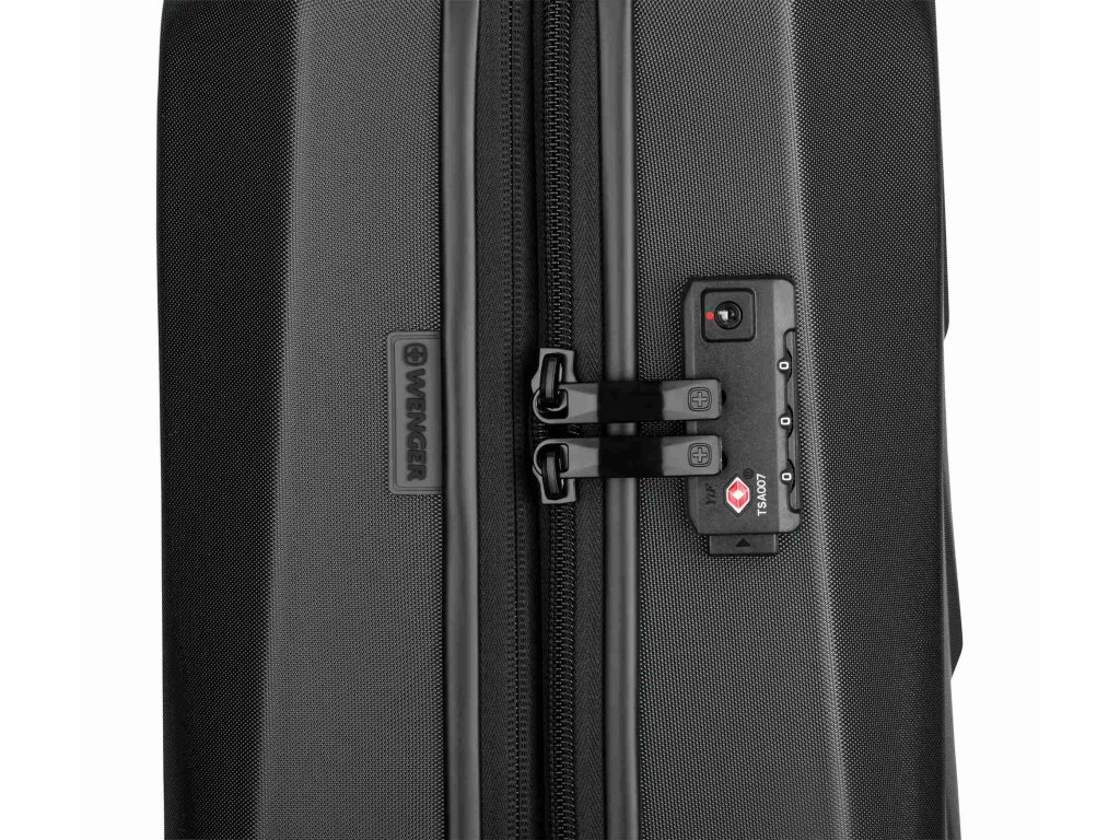 - Integrovaný kombinační zámek TSA na boku kufru.