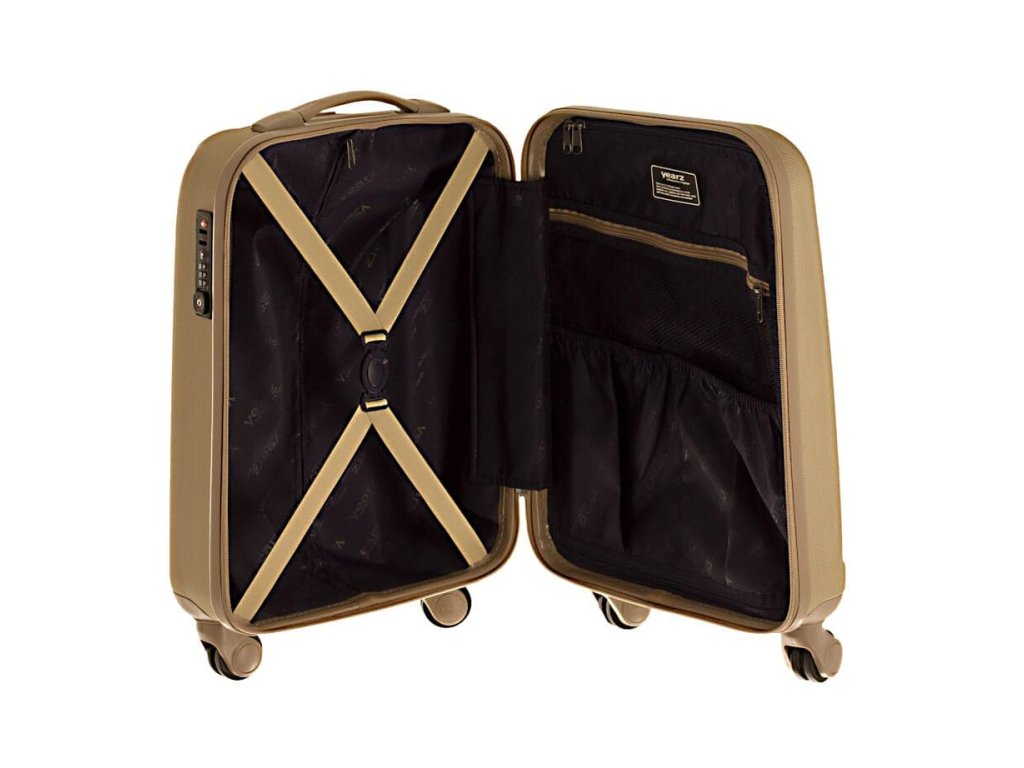 Plastový kabinový kufr 55 cm holandské značky yearz z distribuce značky march v broušené zlaté barvě.