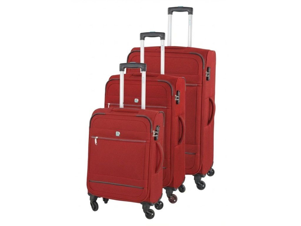 Set 3 ks cestovních textilních kufrů italské značky Dielle v červené barvě. Lehké a kvalitně propracované kufry se pyšní i kvalitními zipy a špičkovými užitými materiály. Tyto kufry se stanou vašimi věrnými společníky na všech vašich cestách, ať už pracovních či odpočinkových. Díky praktickému rozšiřitelnému objemu můžete snadno navýšit objem ve velikostech kufrů M a L, což z těchto kufrů dělá ideálního společníka pro každou cestu.