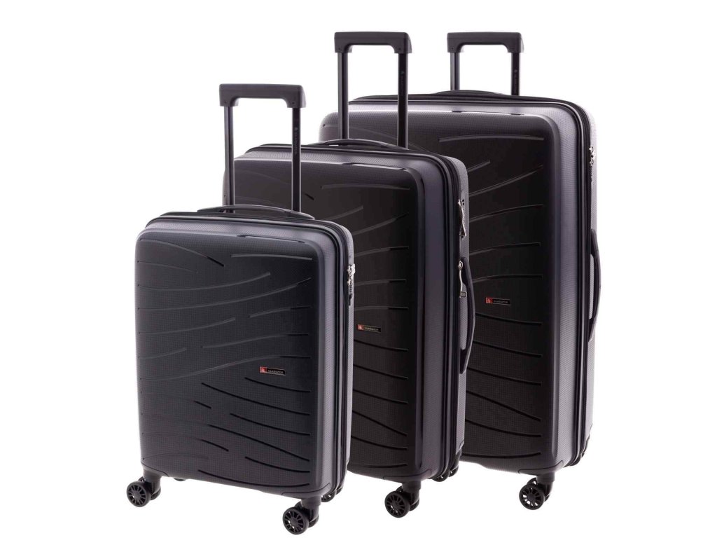 Set 3 ks plastových cestovních kufrů španělské značky Gladiator linie FLOW s prolisy v černé barvě. Tento kufr je vyroben z velmi pružného a odolného materiálu, který zaručuje perfektní podmínky pro cestování a spolehlivě ochrání vaše věci.