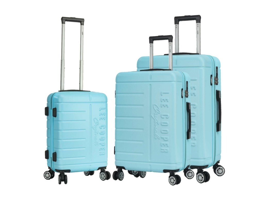 Set 3 ks plastových cestovních kufrů s moderními drážkami značky Lee Cooper série Brighton ve světle modré barvě, který nabízí hned řadu výhod, a to nízkou hmotnost, cenovou dostupnost pro každého, kvalitní zpracování a v neposlední řadě také elegantní a moderní drážkovaný vzhled.