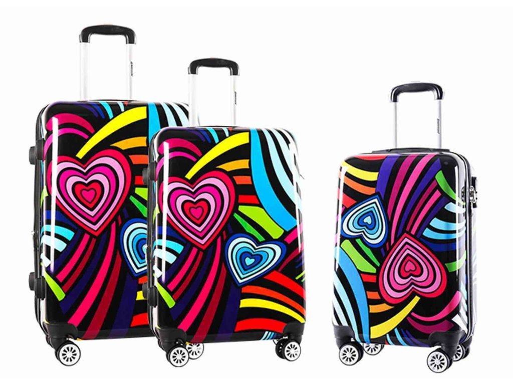 Set 3 ks cestovních kufrů francouzské značky Madisson s motivem barevných srdcí. Má jedinečný vzhled, který jej odlišuje od ostatních zavazadel svým neobvyklým a barevným potiskem.