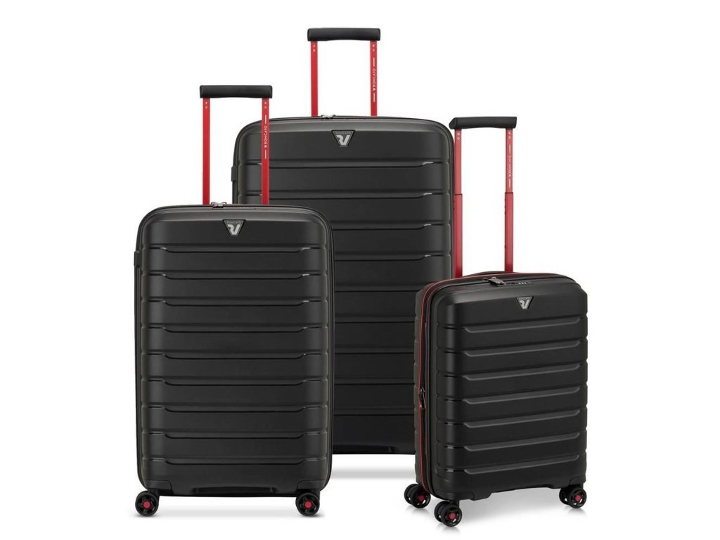 Set 3ks kvalitních plastových kufrů na kolečkách italské značky Roncato řady B-FLYING MOVE v černé barvě s červenými doplňky s možností rozšíření objemu u všech velikostí kufrů. Užijte si báječné cestování s kufry řady B-FLYING! Splňují požadavky i těch náročnějších uživatelů, jsou lehké, precizně zpracovány a vyrobeny z kvalitních materiálů.