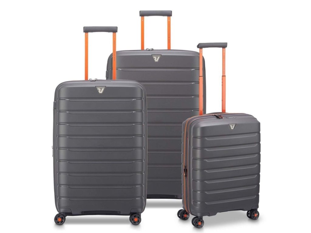 Set 3ks kvalitních plastových kufrů na kolečkách italské značky Roncato řady B-FLYING MOVE v grafitové barvě s oranžovými doplňky s možností rozšíření objemu u všech velikostí kufrů. Užijte si báječné cestování s kufry řady B-FLYING! Splňují požadavky i těch náročnějších uživatelů, jsou lehké, precizně zpracovány a vyrobeny z kvalitních materiálů.