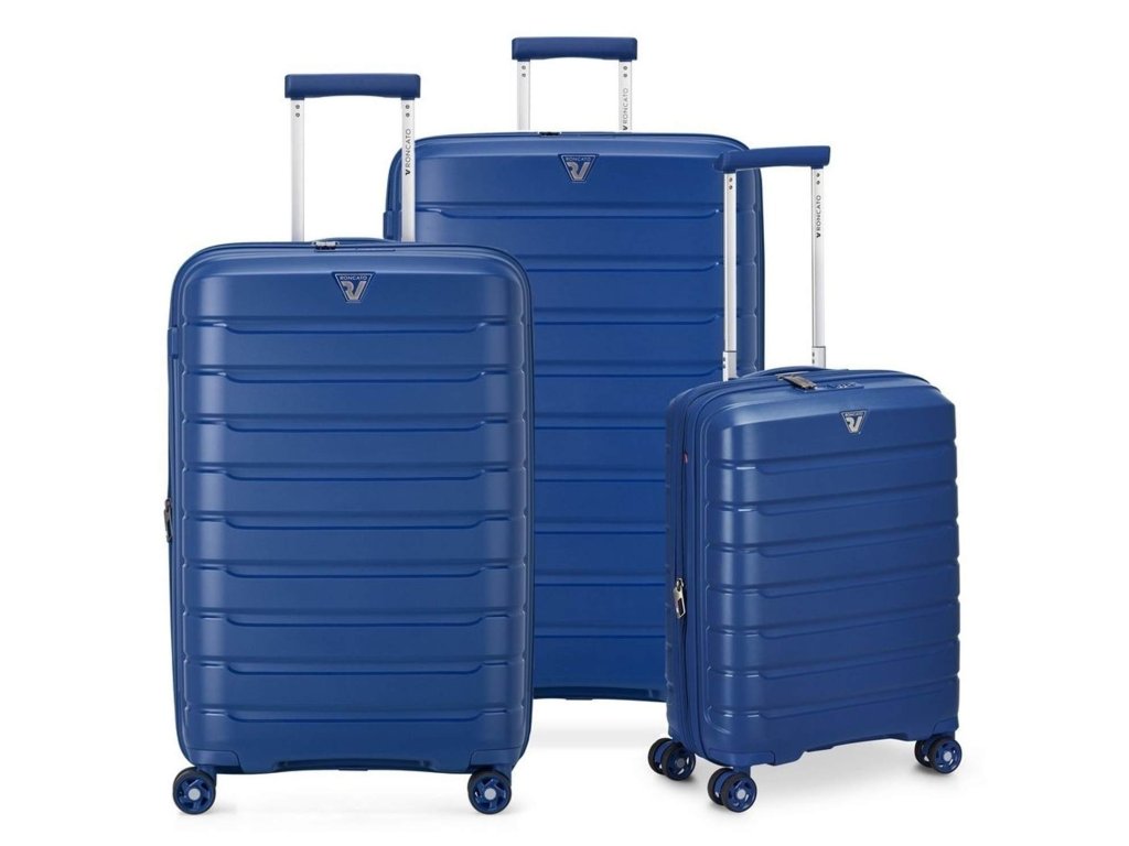 Set 3ks kvalitních plastových kufrů na kolečkách italské značky Roncato řady B-FLYING v tmavě modré barvě s možností rozšíření objemu u všech velikostí kufrů. Užijte si báječné cestování s kufry řady B-FLYING! Splňují požadavky i těch náročnějších uživatelů, jsou lehké, precizně zpracovány a vyrobeny z kvalitních materiálů.