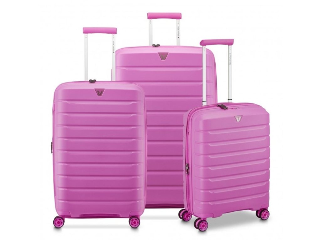 Set 3ks kvalitních plastových kufrů na kolečkách italské značky Roncato řady B-FLYING ve světle růžové barvě s možností rozšíření objemu u všech velikostí kufrů. Užijte si báječné cestování s kufry řady B-FLYING! Splňují požadavky i těch náročnějších uživatelů, jsou lehké, precizně zpracovány a vyrobeny z kvalitních materiálů.