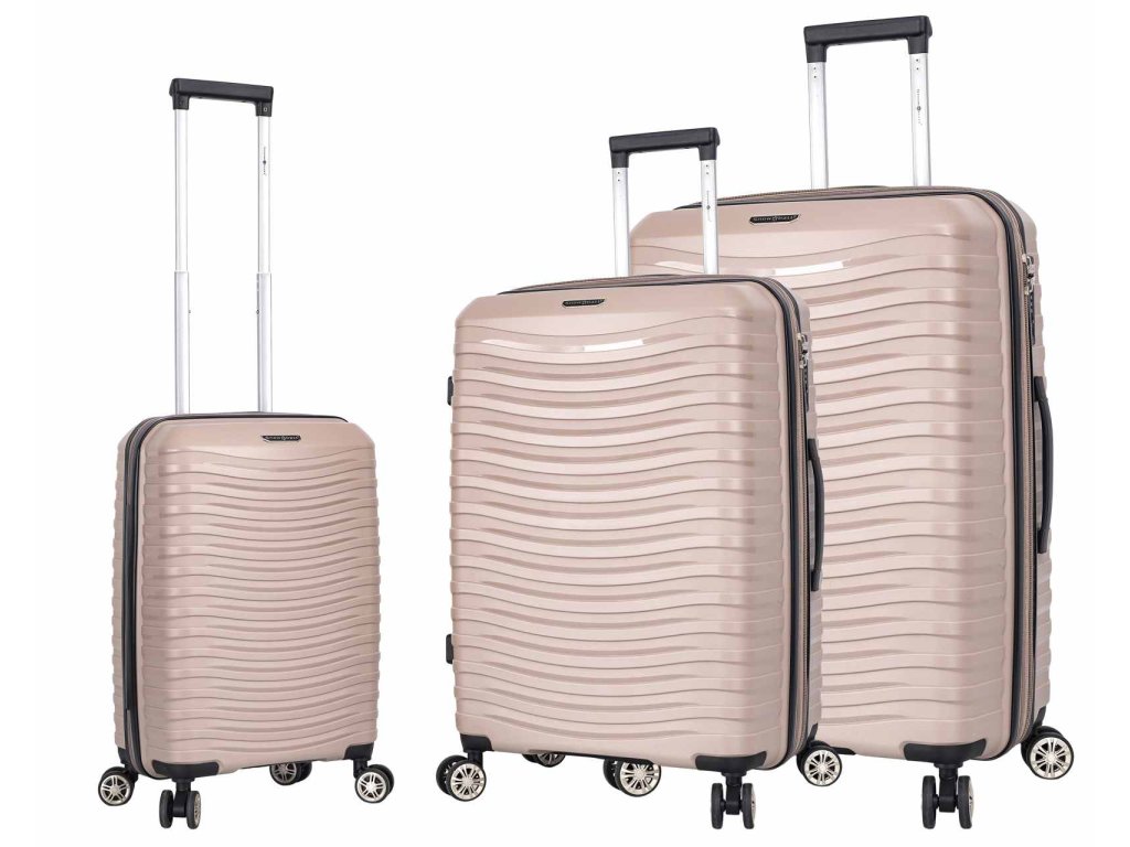 Set 3 ks plastových cestovních kufrů francouzské značky Snowball série Waves v šampaňské barvě. Polypropylen je jedním z nejlepších a nejspolehlivějších materiálů používaných v současnosti při výrobě zavazadel. Je vhodný i pro náročné zákazníky díky velmi kvalitnímu a preciznímu zpracování.