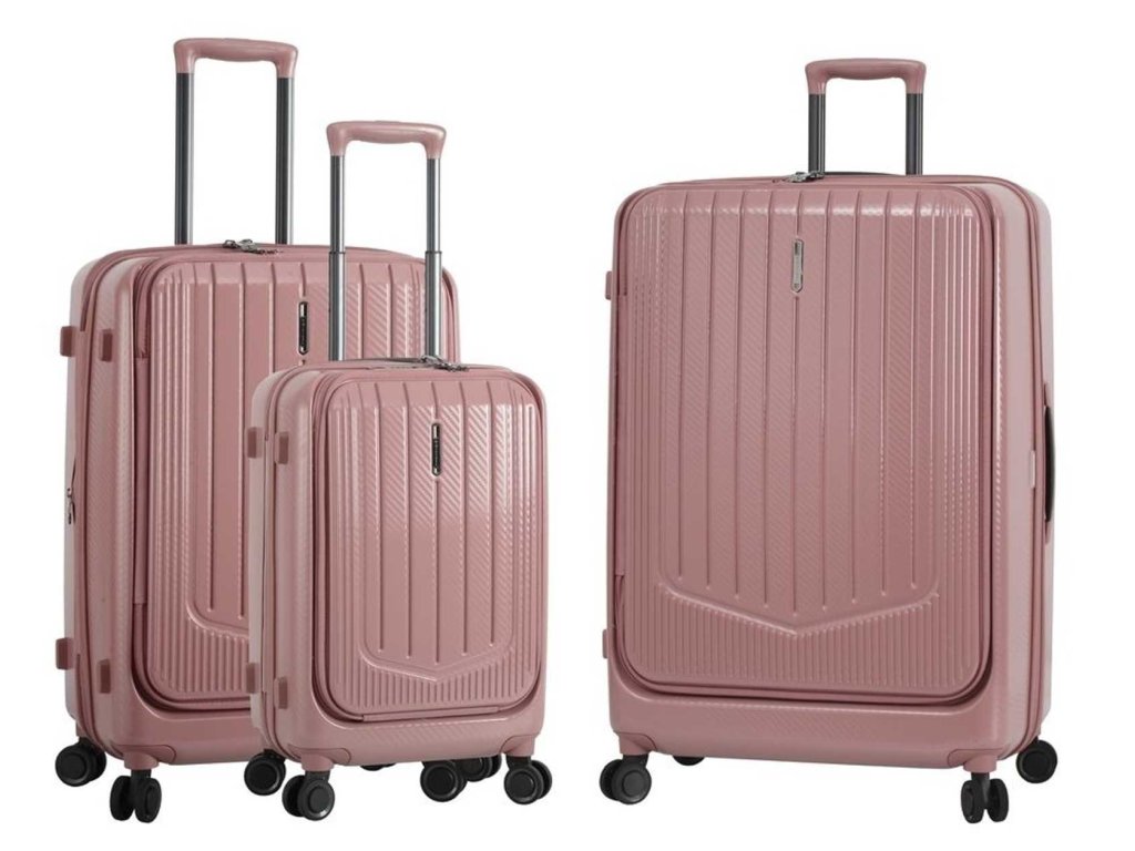 Set 3 ks plastových cestovních kufrů francouzské značky Snowball ve zlato růžové barvě. S tímto lehkým kufrem se stane cestování velkou zábavou. Je oddělitelný na dvě poloviny, se spoustou kapes a přihrádek uvnitř, což má vliv na funkčnost a navíc má výklopnou přední kapsu pro snadný přístup do kufru s možností USB propojení pro Powerbanku. Vybavte se na cesty tímto designovým zavazadlem s velmi zajímavým strukturovaným povrchem od kvalitní značky.