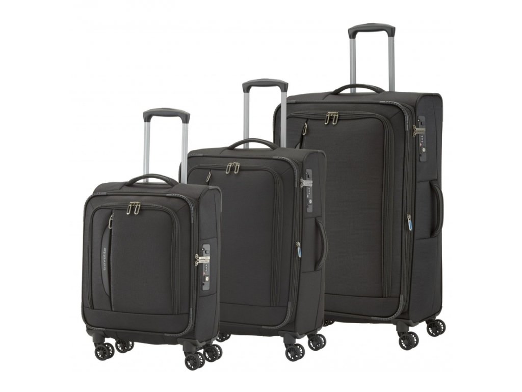 Set 3 ks textilních cestovních kufrů německé značky Travelite v oblíbené černé barvě. Pořiďte si tuto cenově výhodnou sadu tří různých velikostí cestovních kufrů a mějte vždy po ruce tu velikost, kterou právě potřebujete na cestování. Kvalita a design, to jsou kufry série Crosslite značky Travelite.
