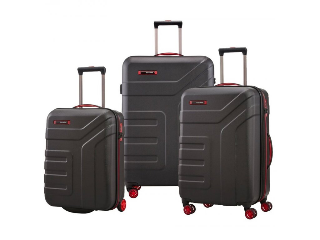 Set 3 ks plastových cestovních kufrů německé značky Travelite v černé barvě. Malý kufr má dvě kolečka, větší velikosti mají kolečka čtyři. Pohodlí a spolehlivost na cestách zažijete s odolnými plastovými kufry Travelite. Vydejte se vstříc dobrodružství s těmito moderními zavazadly.
