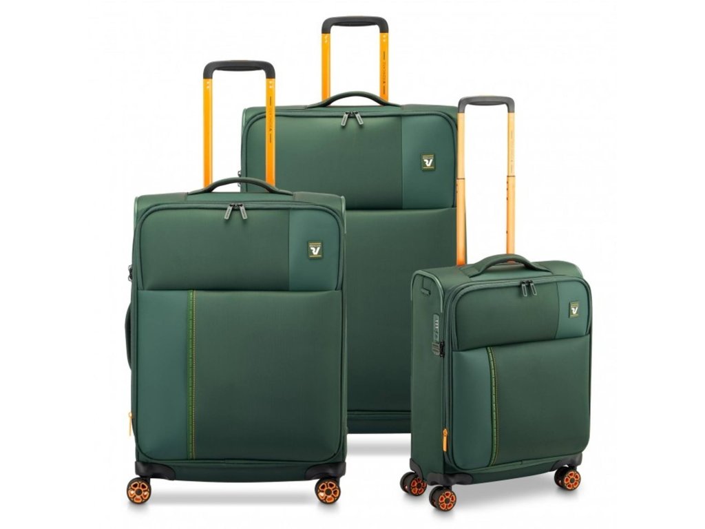 Set 3 ks textilních cestovních zavazadel italské značky Roncato série Move Soft v zelené barvě s oranžovými doplňky. Tyto elegantní kufry v sobě skrývají mnoho prostoru a je možnost navíc rozšířit jeho objem u všech velikostí, což ocení zejména aktivnější cestovatelé. Kvalitní zpracování a moderní design se snoubí s funkčností, lehkostí a precizními užitými materiály.