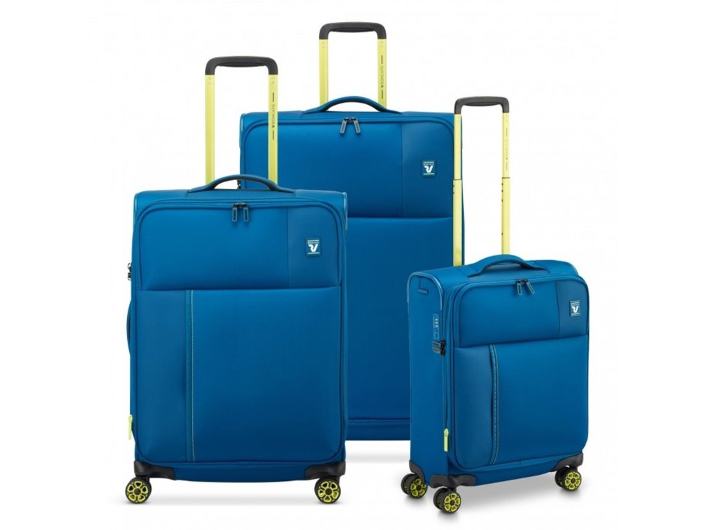 Set 3 ks textilních cestovních zavazadel italské značky Roncato série Move Soft v modré barvě s limetkovými doplňky. Tyto elegantní kufry v sobě skrývají mnoho prostoru a je možnost navíc rozšířit jeho objem u všech velikostí, což ocení zejména aktivnější cestovatelé. Kvalitní zpracování a moderní design se snoubí s funkčností, lehkostí a precizními užitými materiály.