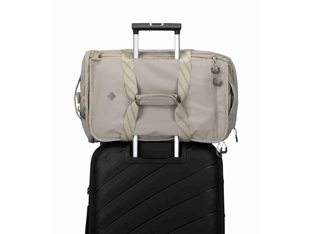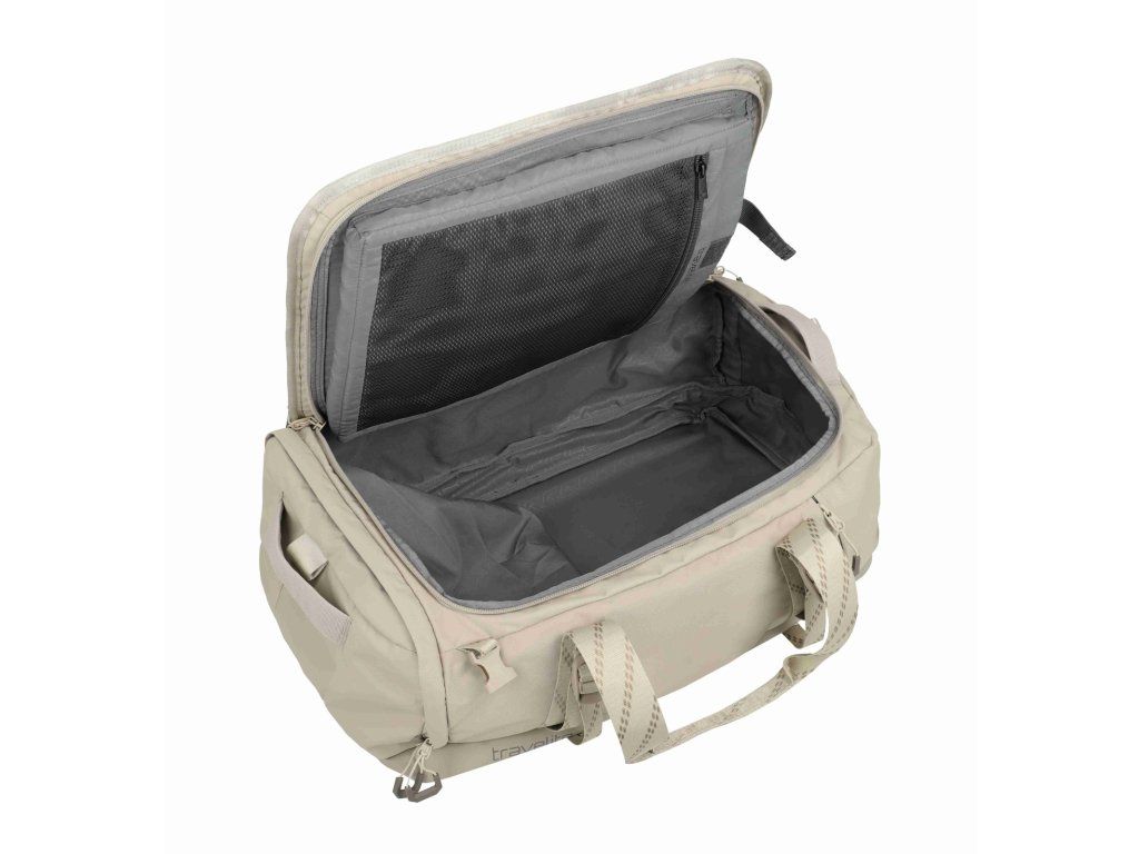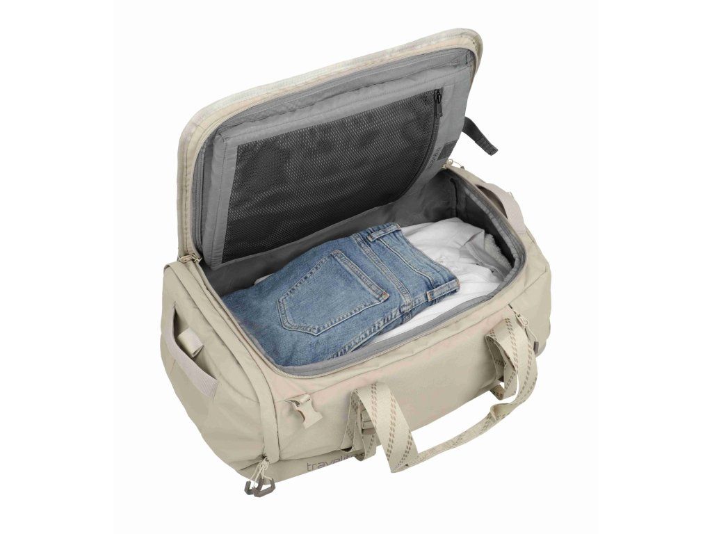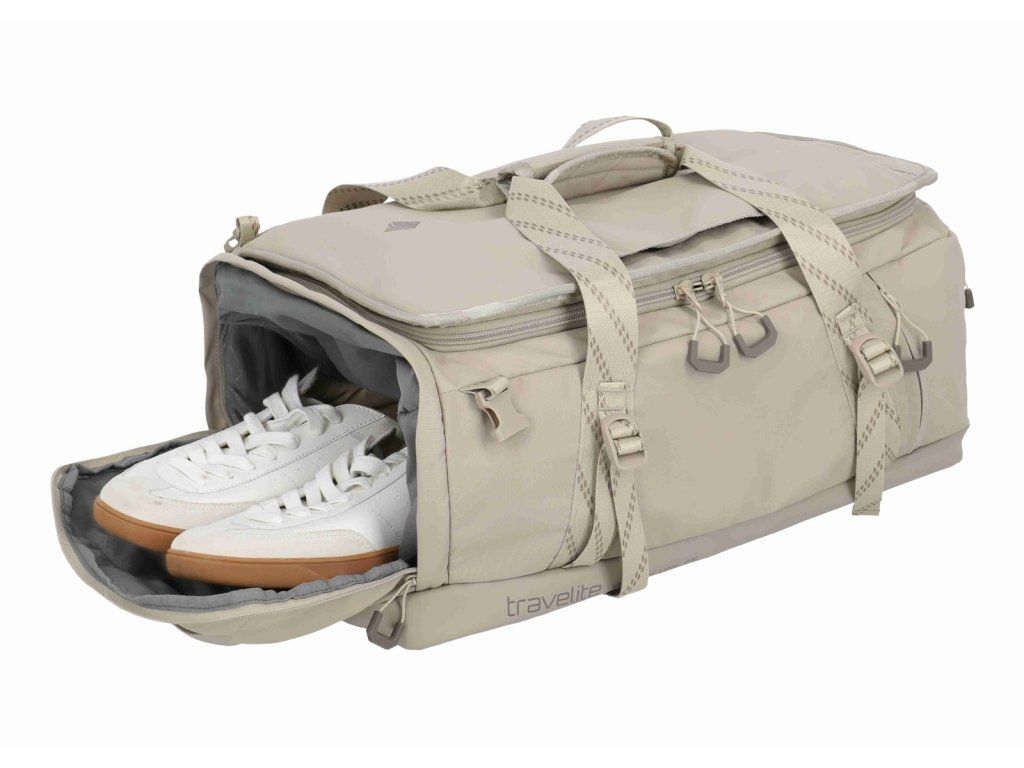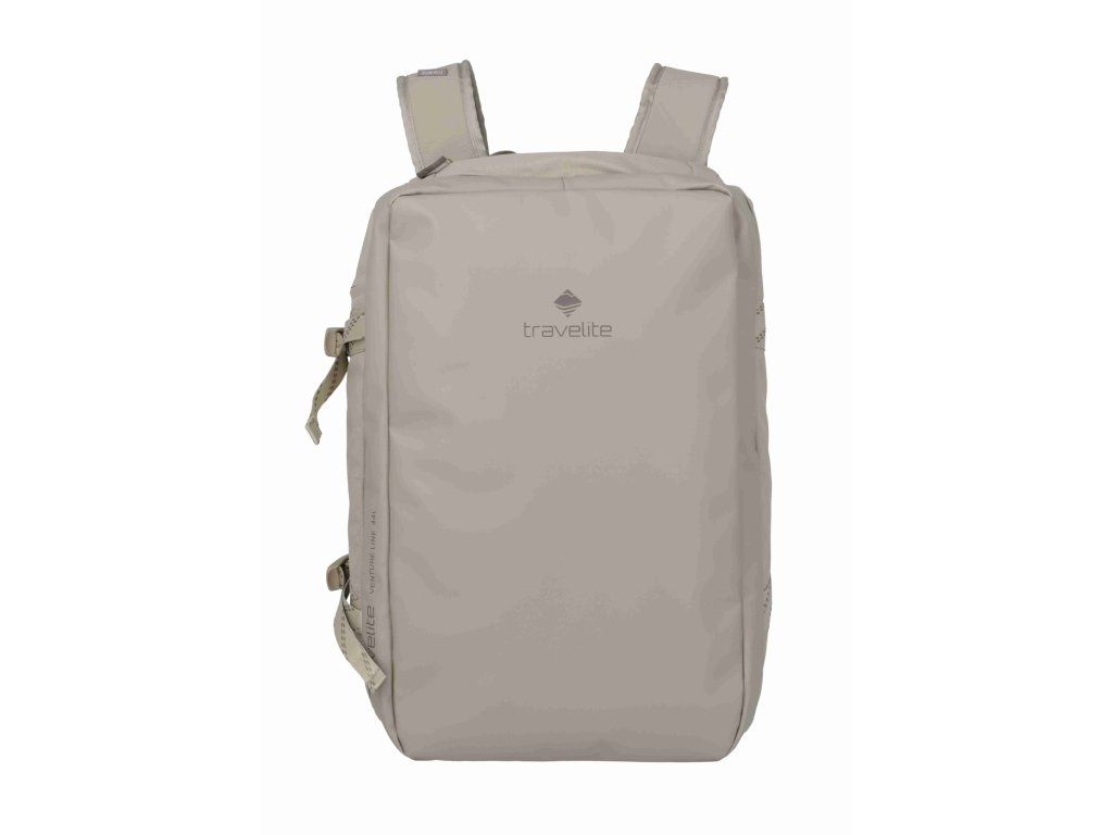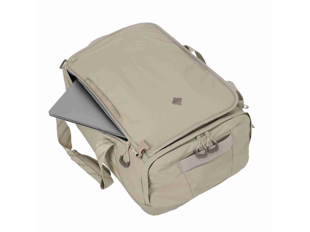 Kvalitní cestovní taška-batoh značky Travelite sére Venture line M v zajímavé pískové barvě. Tahle taška-batoh 2v1 je dělaná na dny, kdy nevíte, co přijde: ráno do práce, odpoledne trénink a večer rychlý odjezd. Vypadá čistě a nenápadně, ale je překvapivě praktická – prostorný hlavní oddíl pojme věci na víkend i sport a díky širokému otevírání se do ní pohodlně balí. Když potřebujete volné ruce, vezmete ji jako batoh – s polstrovanými ramenními popruhy a hrudním popruhem pro stabilnější nošení. A když chcete elegantnější „taškový“ režim (např. do auta, do vlaku nebo na letišti), ramenní popruhy jednoduše schováte, takže nikde neplandají a nic se nezachytává. Velké plus jsou i boční kompresní popruhy, které pomůžou stáhnout objem a zároveň poslouží k uchycení výbavy – třeba karimatky nebo bundy. Nechybí ani praktické kapsy na drobnosti, které chcete mít rychle po ruce.