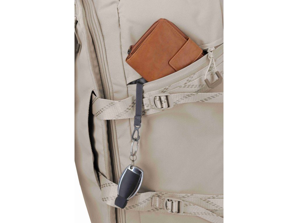 - Přední, boční a zadní kapsa na zip, karabina na klíče