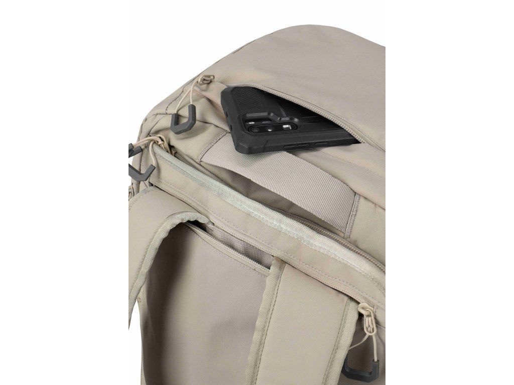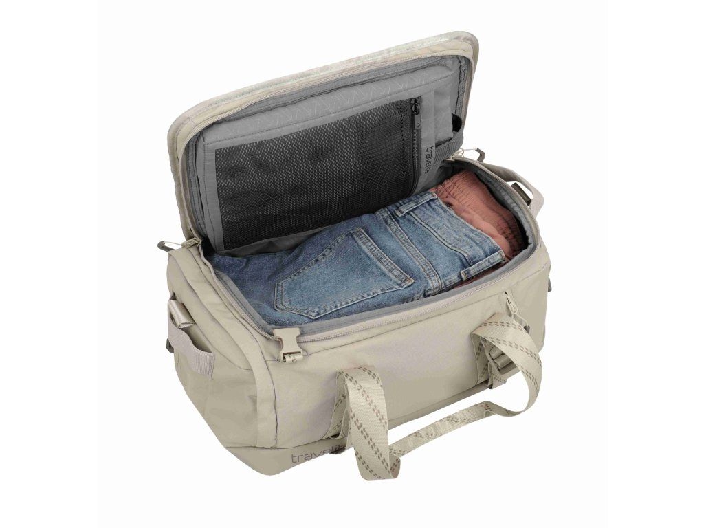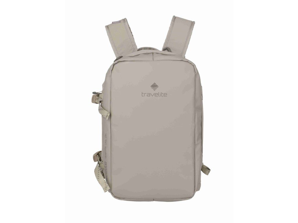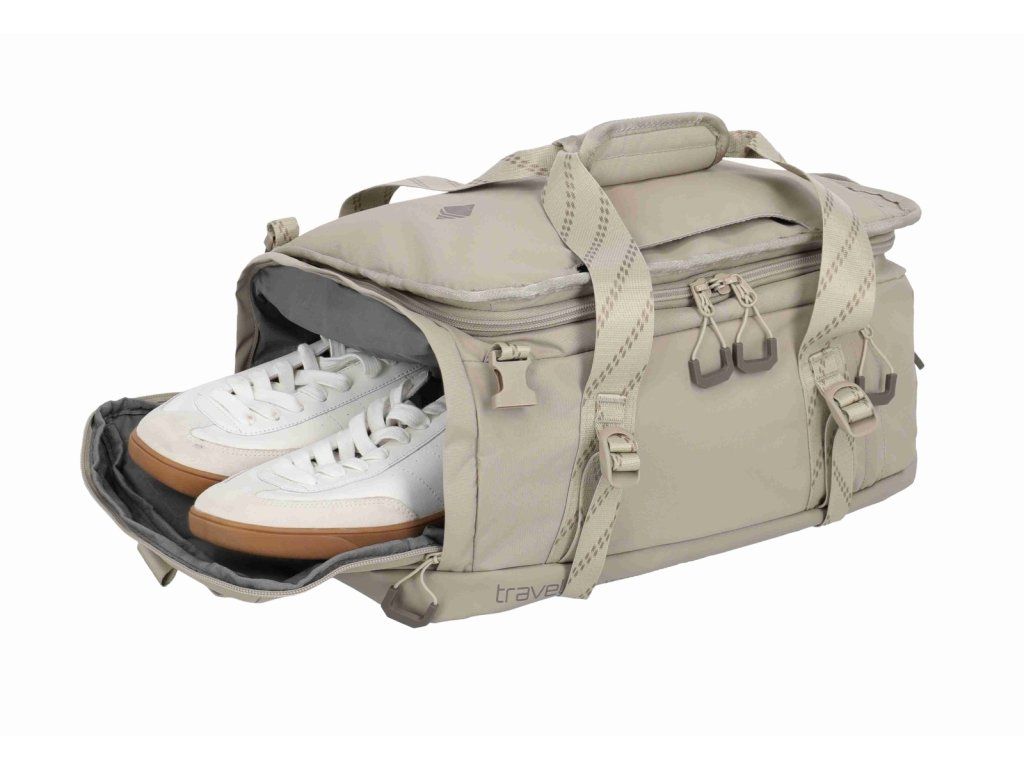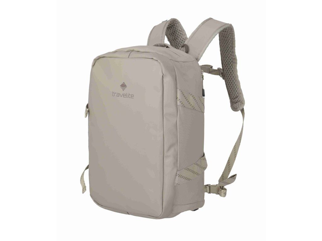 Kvalitní cestovní taška-batoh značky Travelite sére Venture line S Ryanair v zajímavé pískové barvě. Jedno zavazadlo, dvě pohodlné role. Travelite Venture line S Ryanair funguje jako kompaktní cestovní taška i jako batoh – podle toho, jestli zrovna běžíte na gate, jedete vlakem, nebo jen přebíháte město. Toto palubní zavazadlo si můžete vzít s sebou do letadla, jak vyžaduje společnost Ryanair. Minimalistický černý vzhled působí čistě a univerzálně, takže se hodí na víkend, sport i krátkou služební cestu. Uvnitř najdete prakticky řešený hlavní prostor s „kufrovým“ otevíráním, takže se balí přehledně jako do malého kufru. Ve víku je velká síťovaná kapsa na zip na věci, které chcete mít odděleně a na očích (doklady, nabíječky, drobnosti). Velké plus je i samostatná přihrádka na boty – ideální, když nechcete míchat tenisky s oblečením. Když ji nesete jako batoh, oceníte polstrované ramenní popruhy a hrudní pás pro stabilnější nošení. A když chcete režim „taška“, popruhy jednoduše schováte, takže nikde neplandají a nic se nezachytává. Kompresní popruhy navíc pomůžou stáhnout objem, udržet tvar a klidně i přichytit výbavu zvenku (třeba karimatku).