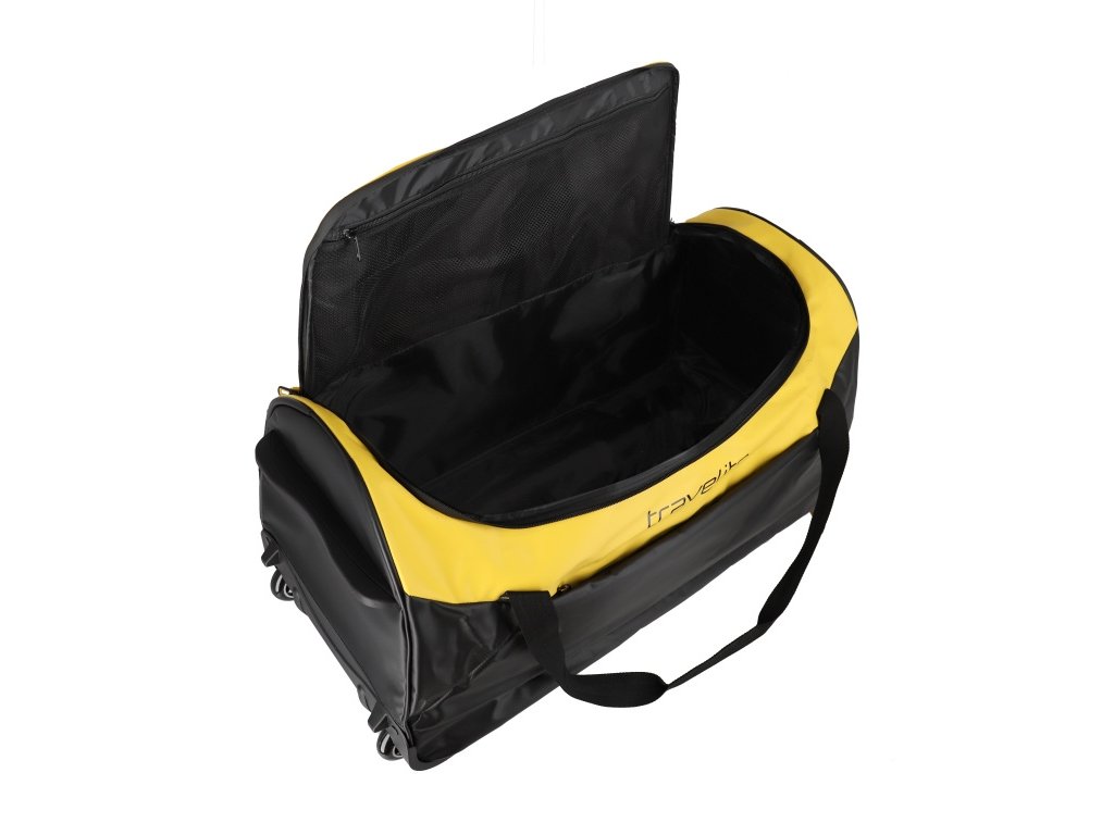 Všestranná cestovní textilní taška 71 cm na kolečkách v kombinaci žluté a černé barvy z kolekce německé značky travelite linie basics.