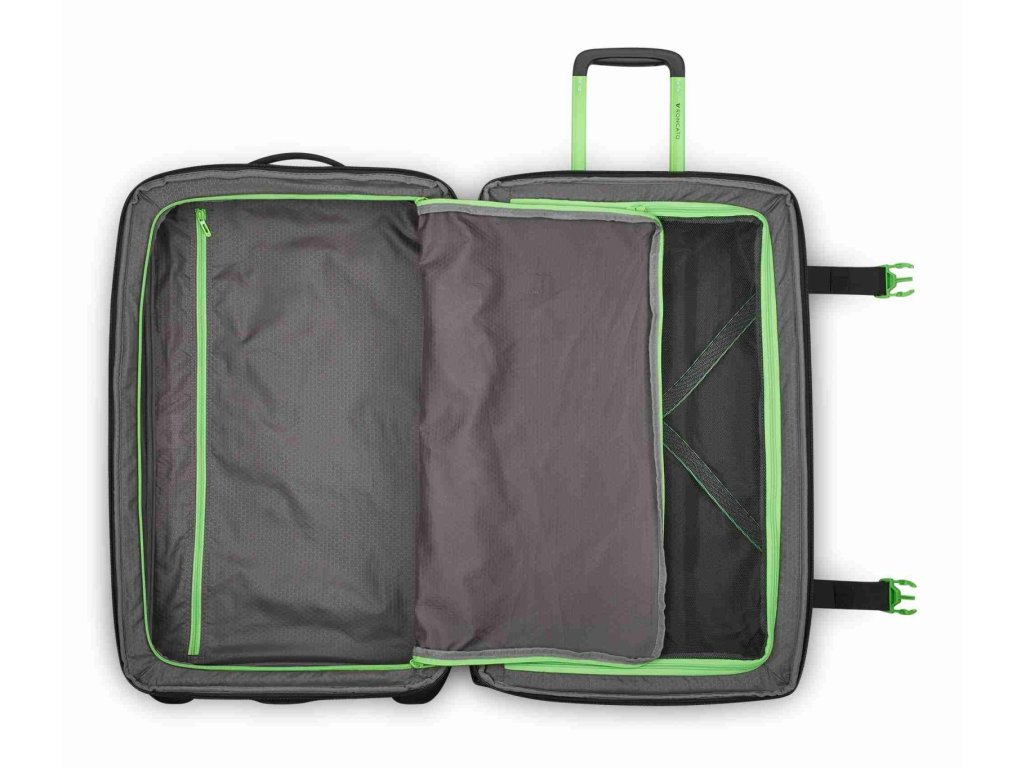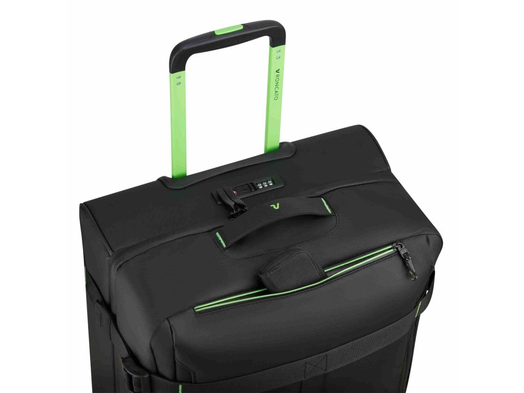 Cestovní textilní taška 68 cm na kolečkách italské značky Roncato v oblíbené černé barvě se zelenými doplňky série Norway. Roncato Norway M je přesně ten typ cestovní tašky, který oceníš ve chvíli, kdy nechceš řešit kompromisy. Není to kufr, není to batoh – je to odolná cestovní taška na kolečkách, která zvládne víkend, služební cestu i aktivní dovolenou. Nová kolekce Norway je navržena pro ty, kteří milují cestování, aniž by se vzdali charakteru a funkčnosti, a spojuje městskou inspiraci s outdoorovým duchem. Norway je všestranná, mladistvá a dynamická kolekce ideální pro ty, kteří hledají flexibilitu, praktičnost a ležérní, ale zároveň rafinovaný styl – ideální pro každou cestu. Pro dynamické cestovatele mezi městem a přírodou. Ideální pro víkendové cesty, cestování letadlem, každodenní použití ve městě. Norway je kolekce vyrobená z voděodolného / vodoodpudivého materiálu se sportovním designem pro ty, kteří hledají všestrannost a odolnost na každé cestě.