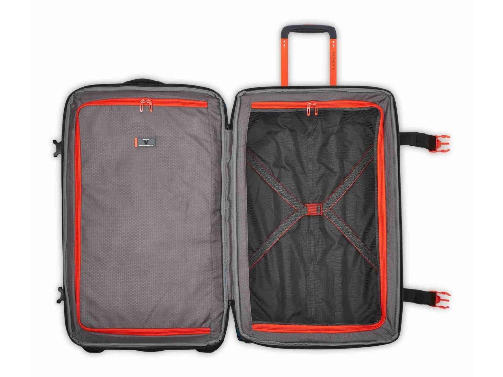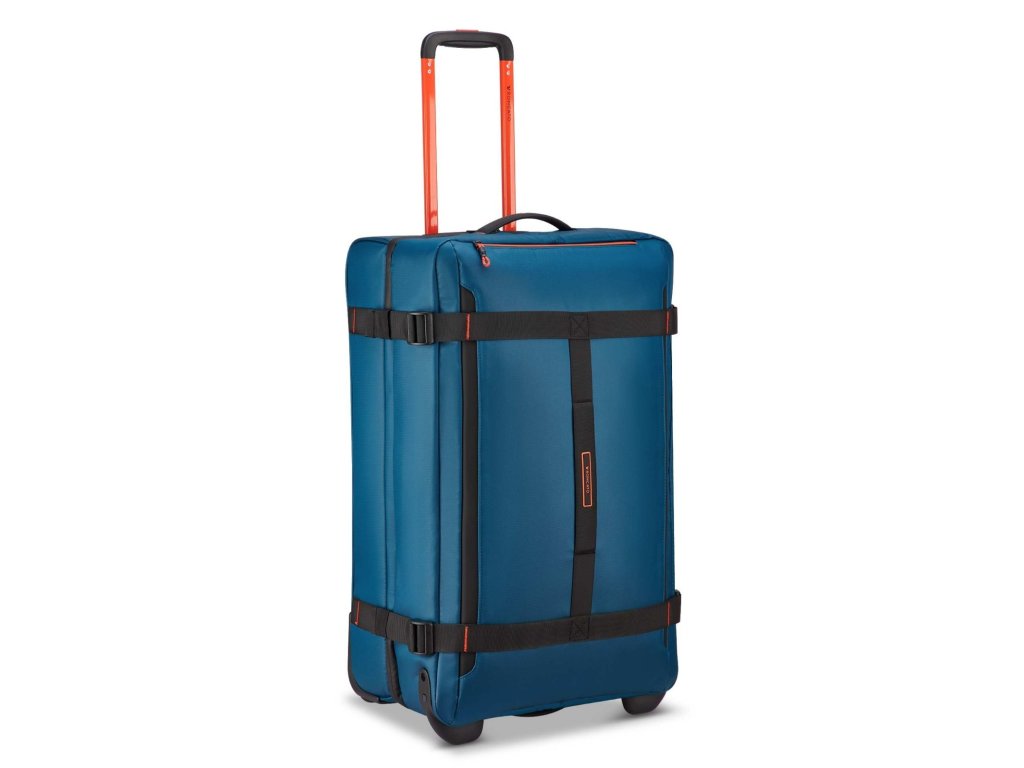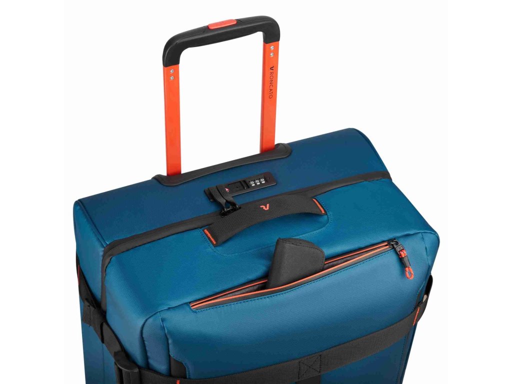 Cestovní textilní taška 68 cm na kolečkách italské značky Roncato v modré barvě s červenými doplňky série Norway. Roncato Norway M je přesně ten typ cestovní tašky, který oceníš ve chvíli, kdy nechceš řešit kompromisy. Není to kufr, není to batoh – je to odolná cestovní taška na kolečkách, která zvládne víkend, služební cestu i aktivní dovolenou. Nová kolekce Norway je navržena pro ty, kteří milují cestování, aniž by se vzdali charakteru a funkčnosti, a spojuje městskou inspiraci s outdoorovým duchem. Norway je všestranná, mladistvá a dynamická kolekce ideální pro ty, kteří hledají flexibilitu, praktičnost a ležérní, ale zároveň rafinovaný styl – ideální pro každou cestu. Pro dynamické cestovatele mezi městem a přírodou. Ideální pro víkendové cesty, cestování letadlem, každodenní použití ve městě. Norway je kolekce vyrobená z voděodolného / vodoodpudivého materiálu se sportovním designem pro ty, kteří hledají všestrannost a odolnost na každé cestě.