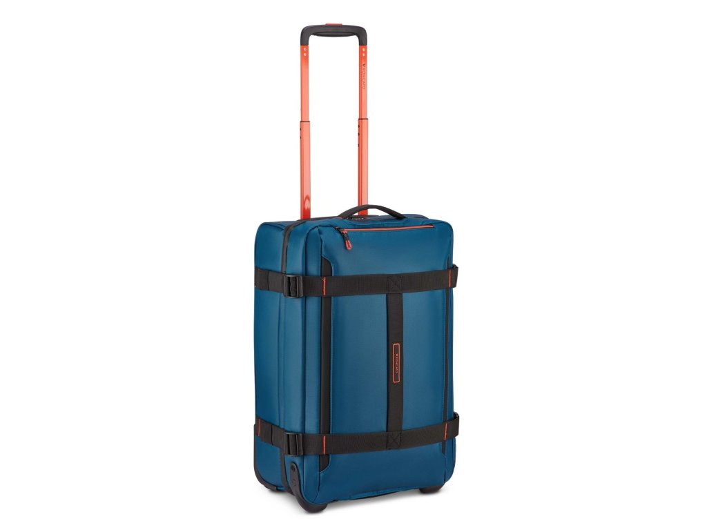 Cestovní textilní taška 55 cm na kolečkách italské značky Roncato v modré barvě s červenými doplňky série Norway. Roncato Norway S je ideální cestovní taška pro ty, kdo chtějí maximum praktičnosti v kompaktním rozměru. Díky velikosti 55 × 35 × 20 cm se skvěle hodí na krátké cesty, víkendové pobyty nebo jako palubní zavazadlo. Nová kolekce Norway je navržena pro ty, kteří milují cestování, aniž by se vzdali charakteru a funkčnosti, a spojuje městskou inspiraci s outdoorovým duchem. Norway je všestranná, mladistvá a dynamická kolekce ideální pro ty, kteří hledají flexibilitu, praktičnost a ležérní, ale zároveň rafinovaný styl – ideální pro každou cestu. Pro dynamické cestovatele mezi městem a přírodou. Ideální pro víkendové cesty, cestování letadlem, každodenní použití ve městě. Norway je kolekce vyrobená z voděodolného / vodoodpudivého materiálu se sportovním designem pro ty, kteří hledají všestrannost a odolnost na každé cestě.