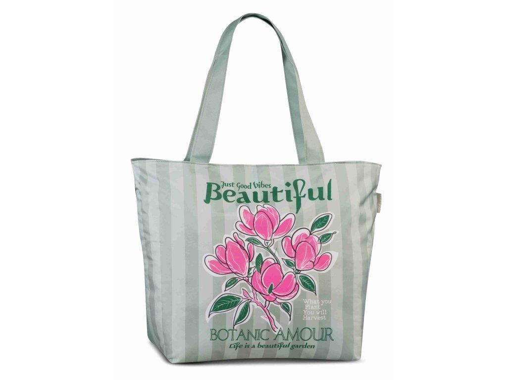 Dámská textilní taška značky Fabrizio Mango ve světlé šedozelené barvě s nápisem a potiskem květů.Přineste si do svého života kousek elegance a pozitivní energie s dámskou taškou Fabrizio Beautiful! Tento stylový doplněk s nádherným motivem květin je ideální volbou pro ženy, které chtějí vyjádřit svou osobnost a radost ze života. S touto taškou se budete cítit nejen módně, ale také inspirativně.