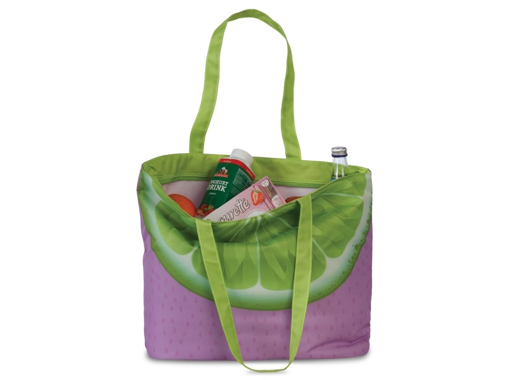 Textilní chladící taška v kombinaci fialové a zelené barvy německé značky Fabrizio s letním potiskem ovoce. Nejen na pláž, ale i na nákupy nebo volnočasové aktivity, Vám skvěle poslouží tato módní chladící taška. Vydejte se vstříc létu s trendy taškami nové kolekce Fabrizio.