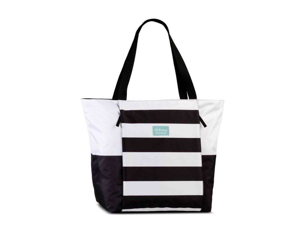Plážová textilní taška značky Fabrizio v kombinaci bílé a černé barvy s pruhy v předu tašky. Motiv dámské tašky Fabrizio Yoga je moderní a nadčasový, s výraznými černobílými pruhy, které dodávají tašce stylový vzhled a je ideálním společníkem pro všechny milovnice jógy a aktivního životního stylu. S jejím prostorným a praktickým designem budete mít všechny své nezbytnosti na dosah ruky, ať už se chystáte na lekci jógy, do fitness centra nebo na víkendový výlet.