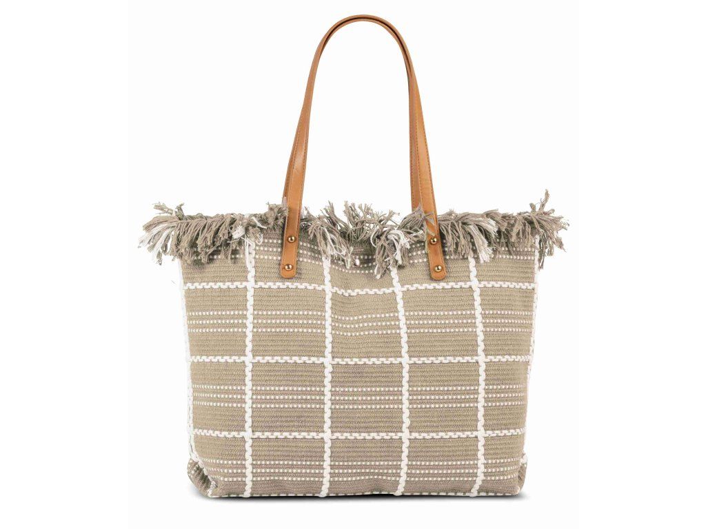 Dámská taška německé značky Fabrizio v kombinaci béžové a bílé barvy. Objevte dokonalou kombinaci stylu a pohodlí s dámskou taškou Relax in Style! Tento jedinečný kousek je navržen tak, aby splnil požadavky moderní ženy, která hledá nejen praktický, ale také módní doplněk. Taška se pyšní atraktivním designem s béžovobílým vzorem, který je doplněn o trendy třásně na okrajích, což jí dodává hravý a lehce boho vzhled. Její prostorný tvar a elegantní kožené uši zajišťují jak komfort při nošení, tak i sofistikovaný styl. Černobílá kombinace je nadčasová a snadno se hodí k různým outfitům, od casual po elegantní.