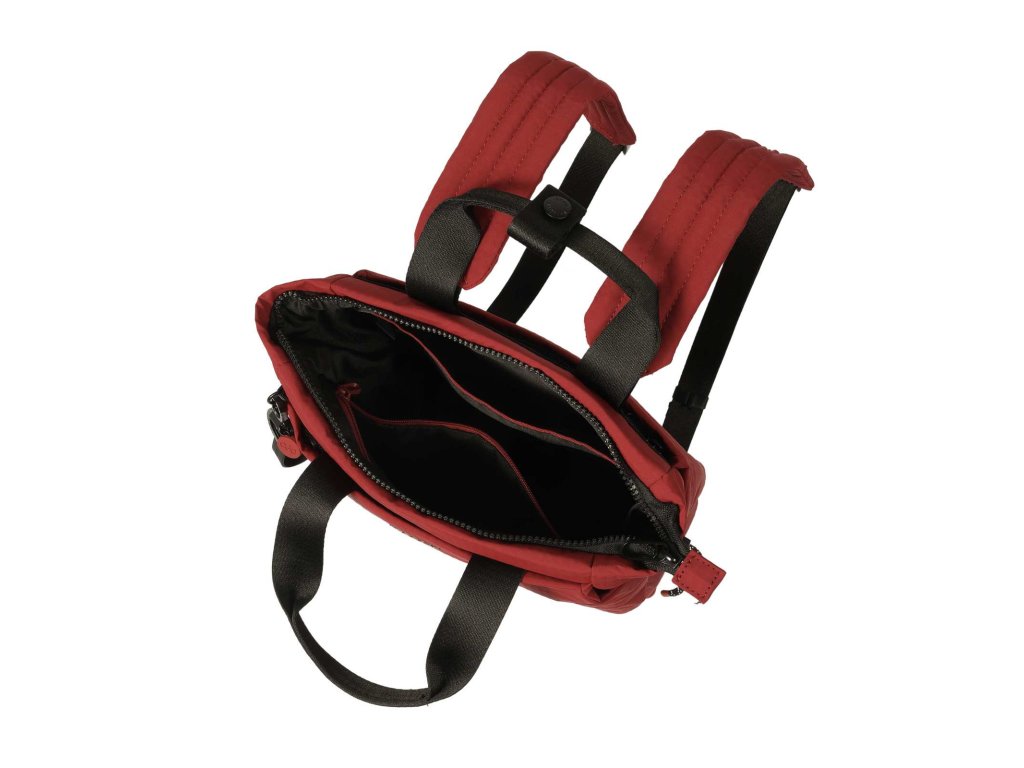 Elegantní dámský batoh Hedgren String Norio v zajímavé cihlové barvě. Někdy prostě potřebujete menší batoh na nezbytnosti, abyste měli volné ruce – a Norio je pro tuto roli ideální. Tento kompaktní batoh má polstrované ramenní popruhy pro pohodlné nošení, ale zároveň i praktická ucha, pokud ho chcete nosit v ruce. Uvnitř najdete místo na dokumenty formátu A4, polstrovanou kapsu na tablet, poutko na klíče a dvě kapsy na telefon nebo drobnosti – ideální kombinace ležérního stylu a funkčnosti. Nechybí ani bezpečnostní kapsa na zádech a boční kapsy na láhev nebo deštník. Pomocí barevně kontrastních šňůrek si navíc můžete upravit vnitřní objem podle potřeby. Měkký vnější materiál je vodoodpudivý a částečně vyroben z recyklovaných materiálů – takže s Norio uděláte radost nejen sobě, ale i planetě. A samozřejmě jsme nezapomněli na typické detaily značky Hedgren: gumové prvky a kovové doplňky.