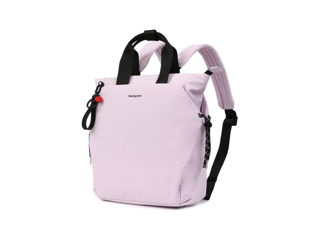 Elegantní dámský batoh Hedgren String Norio ve světle fialové ( dle výrobce orchid ice ) barvě. Někdy prostě potřebujete menší batoh na nezbytnosti, abyste měli volné ruce – a Norio je pro tuto roli ideální. Tento kompaktní batoh má polstrované ramenní popruhy pro pohodlné nošení, ale zároveň i praktická ucha, pokud ho chcete nosit v ruce. Uvnitř najdete místo na dokumenty formátu A4, polstrovanou kapsu na tablet, poutko na klíče a dvě kapsy na telefon nebo drobnosti – ideální kombinace ležérního stylu a funkčnosti. Nechybí ani bezpečnostní kapsa na zádech a boční kapsy na láhev nebo deštník. Pomocí barevně kontrastních šňůrek si navíc můžete upravit vnitřní objem podle potřeby. Měkký vnější materiál je vodoodpudivý a částečně vyroben z recyklovaných materiálů – takže s Norio uděláte radost nejen sobě, ale i planetě. A samozřejmě jsme nezapomněli na typické detaily značky Hedgren: gumové prvky a kovové doplňky.
