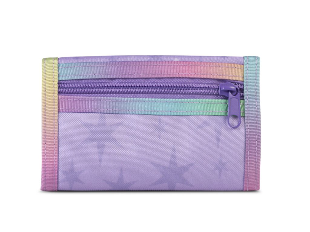 Textilní peněženka německé značky Fabrizio série Unicorn academy ve světle fialové barvě s motivem jednorožce s barevnou hřívou. Stylová dětská peněženka s motivem Unicorn Academy potěší každou malou fanynku kouzelného světa jednorožců. Jemné pastelové barvy, duhová hříva jednorožce a pohádková ilustrace vytvářejí design, který si děti okamžitě zamilují. Peněženka je prakticky řešená pro každodenní použití – pojme bankovky, mince i karty a díky pevnému zapínání drží vše bezpečně na svém místě. Kompaktní velikost se snadno vejde do batohu, kabelky i kapsy, takže je ideální do školy, na výlety i volný čas. Skvělý první krok k samostatnosti… a ano, ztracené drobné už nebudeš hledat po celém bytě.