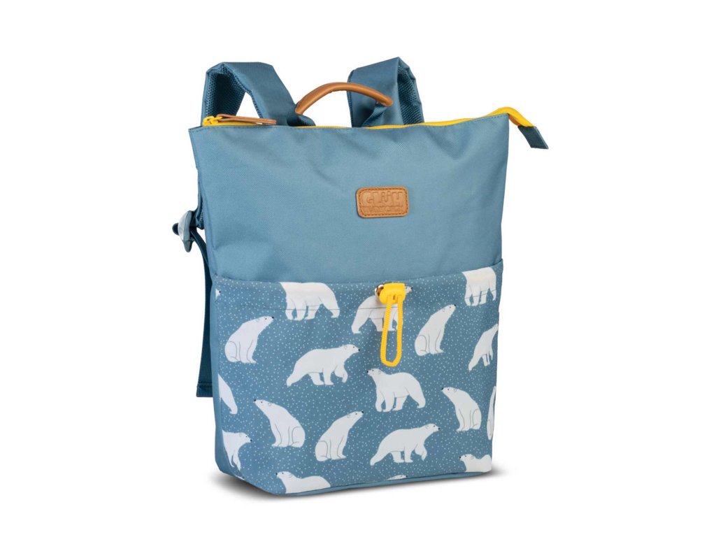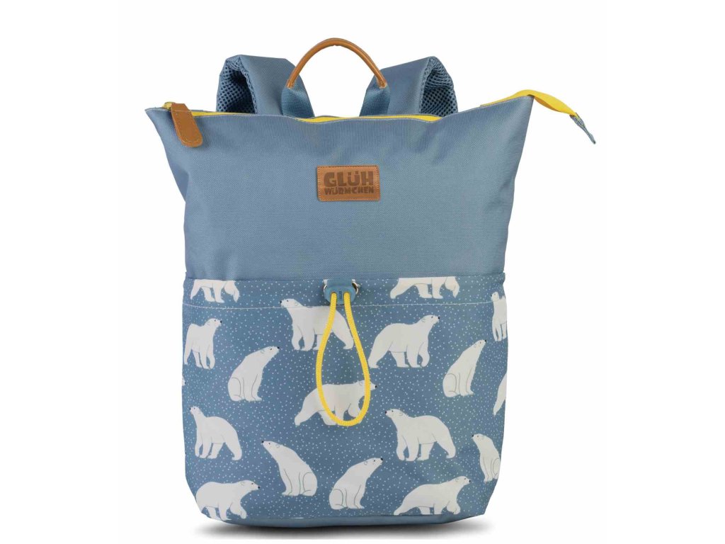 Stylový dětský batůžek GLUH WURMCHEN v distribuci německé značky Sieber v šedomodré barvě s motivem Ledního medvěda. Praktický batoh v moderním skandinávském stylu s roztomilým potiskem ledních medvědů. Hlavní kapsa na zip, přední kapsa s výrazným drukem a pohodlné nastavitelné popruhy zaručí pohodlí na cestě na výlet i do města. Ideální pro malé objevitele se smyslem pro styl.