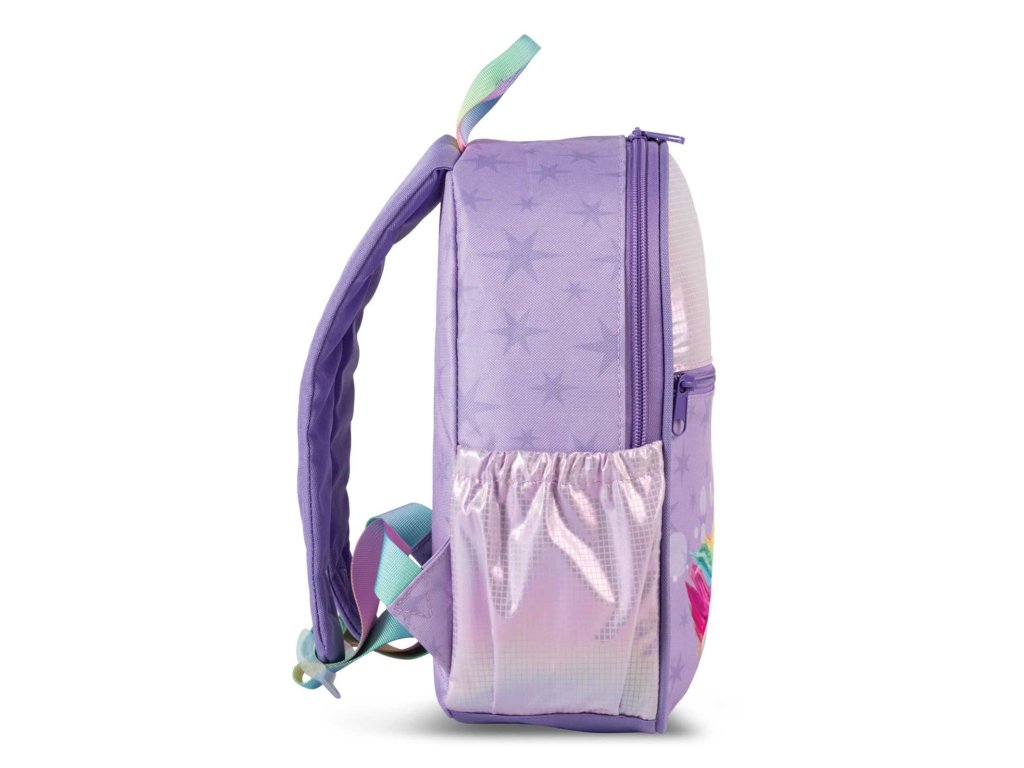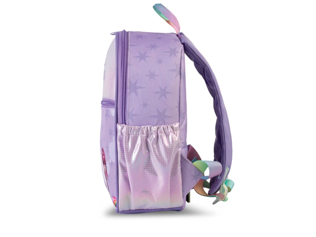 Dětský batůžek německé značky Fabrizio série Unicorn academy shiny ve světle fialové barvě s motivem jednorožce s barevnou hřívou. Úspěšná série Unicorn Academy okouzluje děti po celém světě – a spolu s ní roste i poptávka po kvalitních licencovaných produktech. Nechte děti vstoupit do kouzelného světa Unicorn Academy, plného přátelství, fantazie a magických jednorožců. Na přední kapse batohu je barevný, pohádkový motiv zobrazující dívku jedoucí na jednorožci s duhovou hřívou. Celé provedení působí velmi jemně, kouzelně a snově. Veselý motiv Unicorn Academy potěší každou malou fanynku kouzelných jednorožců. Na horní části je umístěné logo „Unicorn Academy“.