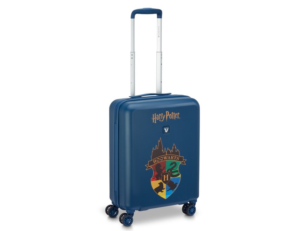 Dětský kvalitní kufřík velikosti S na čtyřech kolečkách italské značky Roncato s výsuvným madlem v modré barvě s motivem Harry Potter. Představujeme oficiální kolekci batohů a kufrů Harry Potter. S radostí oznamujeme naši spolupráci s Warner Bros. Discovery, díky níž vznikla exkluzivní kolekce inspirovaná magickým světem Harryho Pottera – jedné z nejmilovanějších a nejikoničtějších franšíz světové popkultury. Tato nová kolekce, navržená pro skutečné fanoušky ságy, zahrnuje batohy a kufry připravené doprovodit vás na každém kroku: od každodenních povinností až po vzrušující cesty, ať už jde o krátký výlet nebo velké dobrodružství. Produkty kombinují typickou kvalitu a funkčnost RV Roncato s nadčasovým kouzlem magického světa, díky čemuž se stávají dokonalými společníky pro čaroděje a čarodějky všech věkových kategorií. Design této kolekce čerpá z ikonických prvků světa Harryho Pottera!