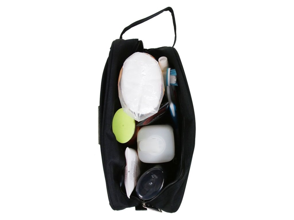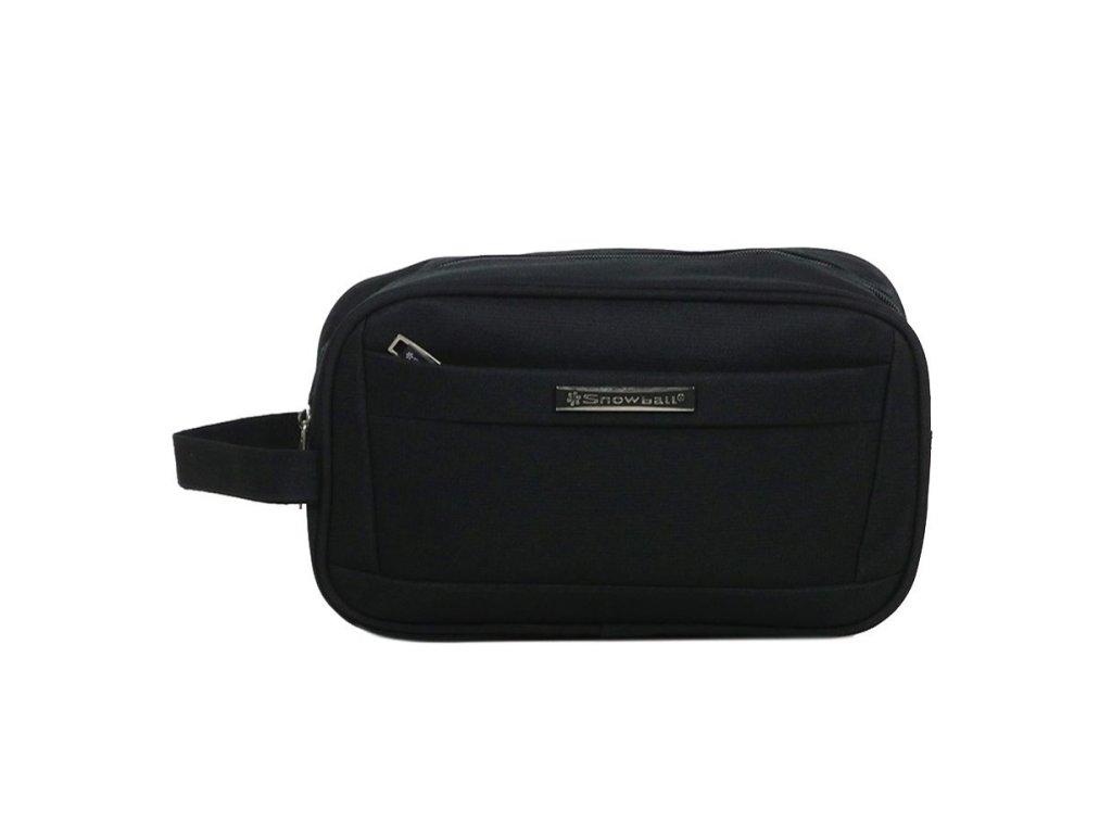 Cestovní kosmetická textilní taška značky Snowball v oblíbené černé barvě. Tašku si můžete pořídit k jakémukoli účelu, kde potřebujete mít při ruce své kosmetické a hygienické potřeby. Je kvalitně zpracovaná a má moderní design.