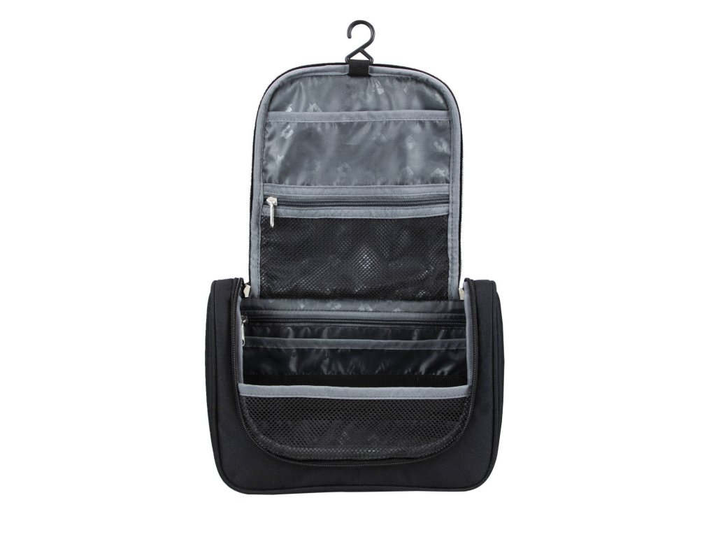 - Uvnitř síťovaná kapsa na zip, další přihrádky, háček na zavěšení.