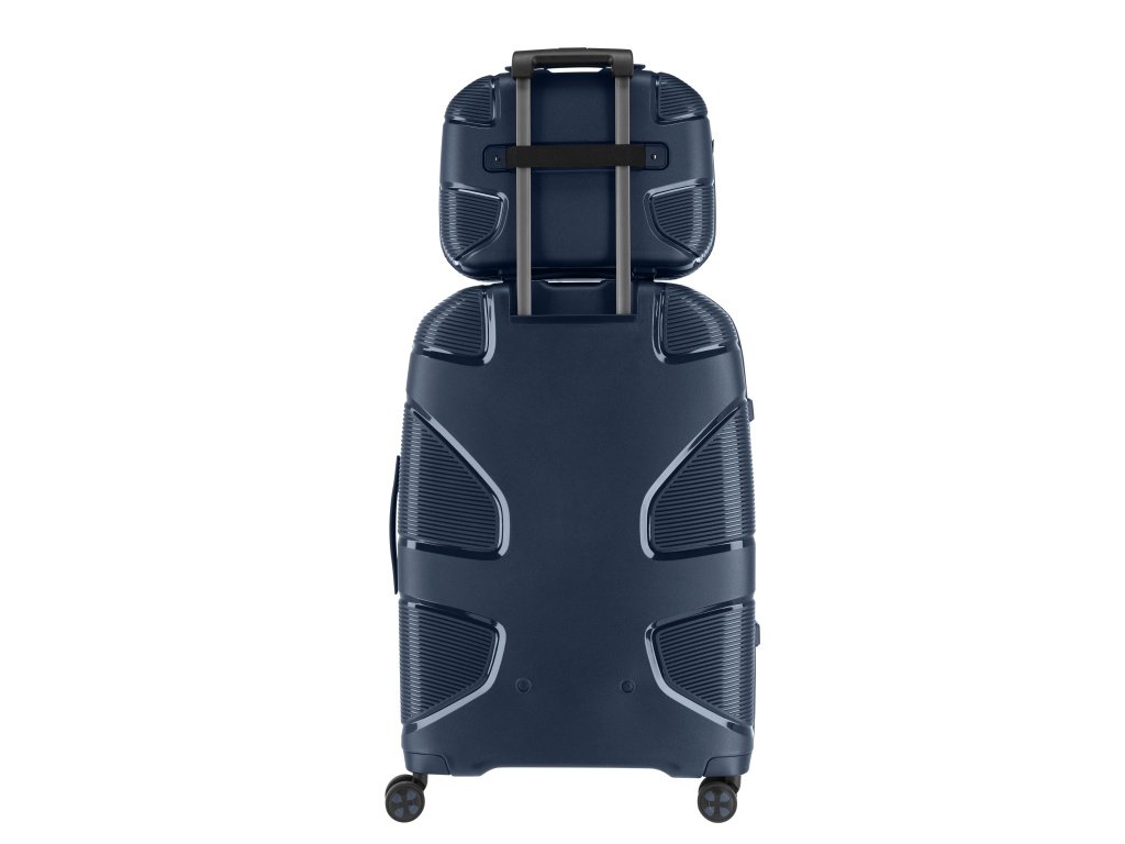 Plastový kosmetický kufr s moderními prolisy německé značky Impackt série IP1 v modré barvě. IMPACKT je nová značka, která může stavět na mnohaletých zkušenostech značky Travelite. IMPACKT byl založen, aby věnoval zvláštní pozornost tématu - udržitelnějšího cestování. Proto je materiál pevné skořepiny 100 % polypropylen (cca 46 % vyrobeno z recyklovaného polypropylenu). Je odolný, lehký a navržený pro maximální životnost. Materiál podšívky je vyroben ze 100% recyklovaného polyethylentereftalátu. PET je polyester, umělé plastové vlákno. Tato látka nabízí mnoho výhod pro naši podšívku: je odolná, odolná proti roztržení, odolná proti opotřebení a nemačkavá. Kromě toho je polyester nejen velmi snadno recyklovatelný, ale kvalita recyklovaného polyesteru je ekvivalentní novému. Snahou značky Impackt je spojit radost z cestování s udržitelností a to pro každého !!!!!