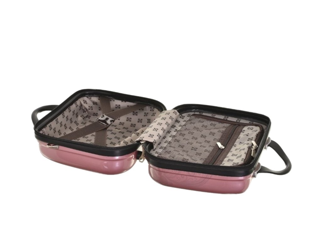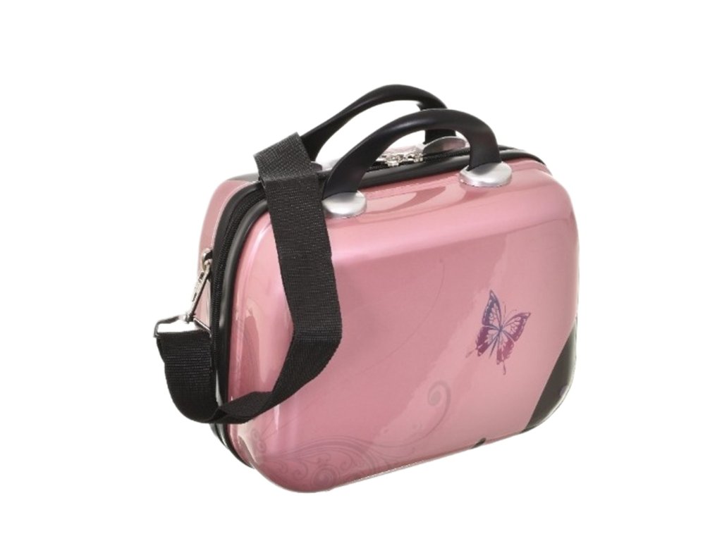 Kosmetický kufřík francouzské značky Madisson ve zlato růžové barvě s motivem letícího motýla.