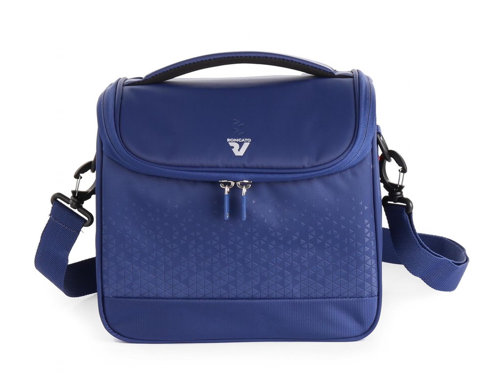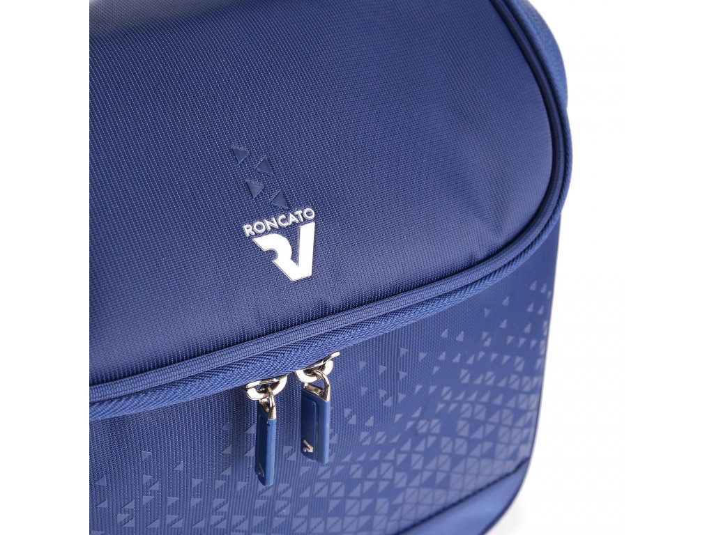Textilní kosmetický kufr italské značky Roncato série Crosslite v modré barvě.