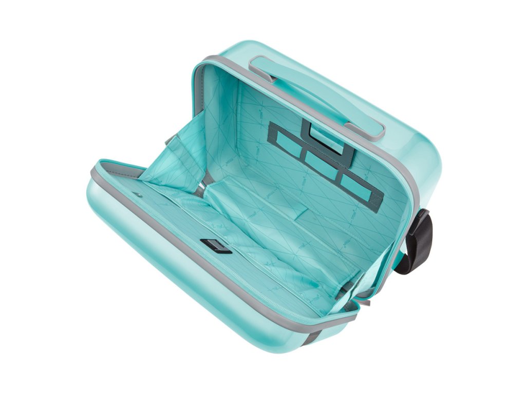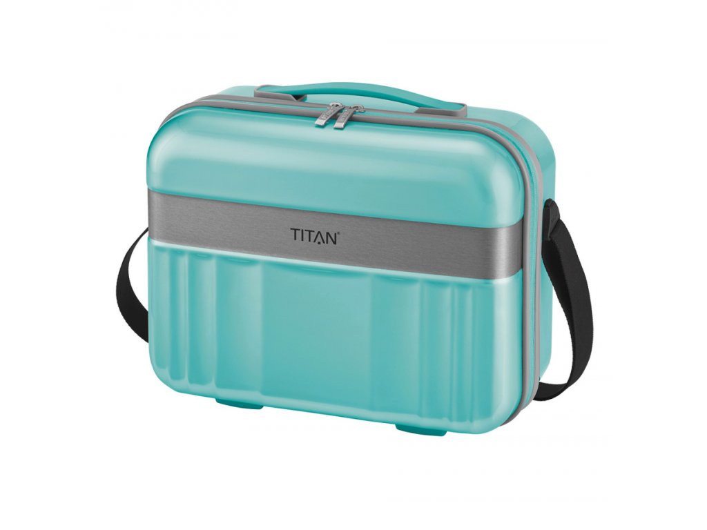 Moderní designový kosmetický kufr německé značky titan z kolekce limitované série spotlight flash z polykarbonátu v modor zelené barvě mint.