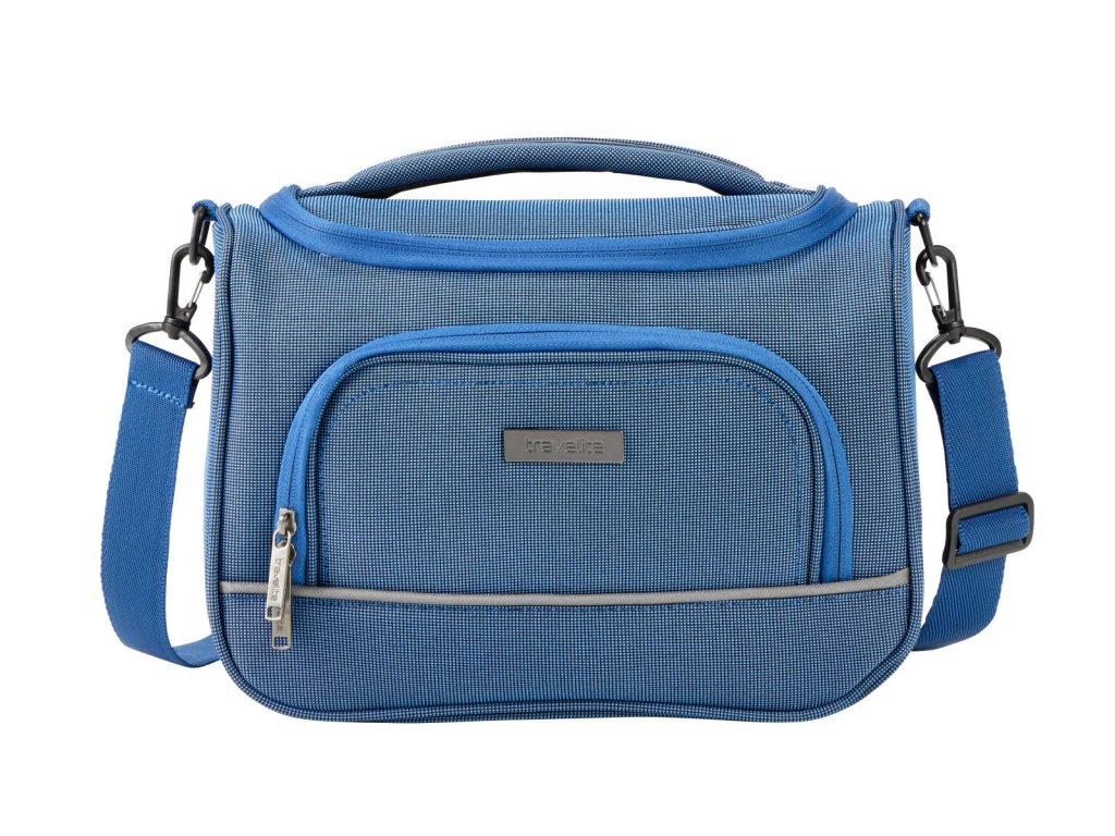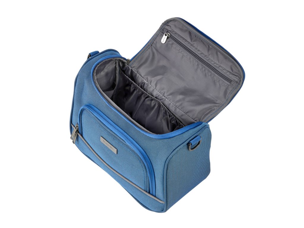 Kosmetický textilní kufr v petrolejové barvě z kolekce německé značky Travelite série Story.